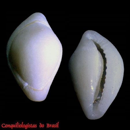 CLASSE: GASTROPODA: MARINHO FAMÍLIA: Ovulidae ESPÉCIE: Pseudosimnia lacrima Simone & Cunha, 2012 Tamanho médio: 7 mm Profundidade: 607 - 620 metros Habitat: Substrato lodoso Alimentação: desconhecida Frequência: rara Ocorrência no Brasil: ES Localidade Tipo: Brasil, Espírito Santo, off Itaúnas, talude continental de Abrolhos, 18°59’S, 37°48’W, 607- 620 m [MD55, stn DC73] Publicação: http://dx.doi.org/10.5252/z2012n4a6 Worms: https://www.marinespecies.org/aphia.php?p=taxdetails&id=714610 Molluscabase: https://www.molluscabase.org/aphia.php?p=taxdetails&id=714610 Foto A: Itaúnas, ES. Holótipo MNHN 25217
