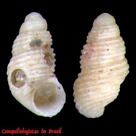 CLASSE: GASTROPODA: MARINHO FAMÍLIA: CERITHIOPSIDAE ESPÉCIE: Cerithiopsis albovittata (C. B. Adams, 1850) Tamanho médio: 3 - 5 mm Profundidade: 0 - 141 metros Habitat: fundos areno-lodosos Alimentação: carnívoro Frequência: incomum Ocorrência no Brasil: PE até RJ Localidade Tipo: Jamaica Sinônimos: Bittium albovittata (C. B. Adams, 1850); Cerithium albovittatum C. B. Adams, 1850; Cerithium latum auct. non C. B. Adams, 1850 Descrição original: https://www.biodiversitylibrary.org/page/13796523#page/119/mode/1up WoRMS: https://www.marinespecies.org/aphia.php?p=taxdetails&id=419865 Malacolog: http://www.malacolog.org/search.php?nameid=3253 Foto A: off Rio de Janeiro. 3,3 mm. MNRJ 16249. Alexandre Dias Pimenta, Raquel Garofalo de Souza Faria, Raquel Medeiros Andrade Figueira & Maurício Romulo Fernandes (2024). Unraveling another of the ‘Big Fiveʹ: new species and records of Cerithiopsidae from Brazil (Caenogastropoda: Triphoroidea)