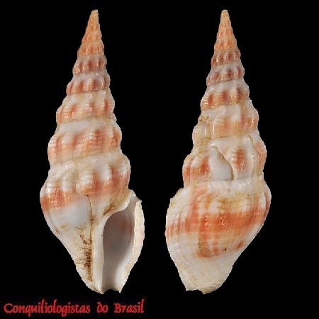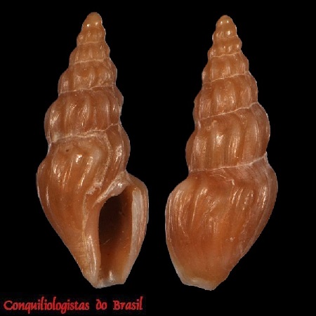 CLASSE: GASTROPODA: MARINHO FAMÍLIA: PSEUDOMELATOMIDAE ESPÉCIE: Carinodrillia braziliensis (E. A. Smith, 1915) Tamanho médio: 17 - 25 mm Profundidade: 35 - 85 metros Habitat: fundos de areia lodosa Alimentação: carnívoro Frequência: incomum Ocorrência no Brasil: RJ até SC Localidade Tipo: off Rio de Janiro, Brasil Sinônimo: Drillia braziliensis E. A. Smith, 1915 Descrição original: https://www.biodiversitylibrary.org/page/965528#page/99/mode/1up WoRMS: https://www.marinespecies.org/aphia.php?p=taxdetails&id=433195 Malacolog: http://www.malacolog.org/search.php?nameid=6487 Foto A: Ubatuba, SP. 25 mm. Col. S.Vanin Foto B: off Cabo Frio, RJ. 100 - 120 m prof. 22,7 mm. Femorale