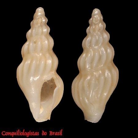 CLASSE: GASTROPODA: MARINHO FAMÍLIA: NEWTONIELLIDAE ESPÉCIE: Cerithiella candela M. Fernandes, Garofalo & Pimenta, 2015 Tamanho médio: 16 mm Profundidade: 1129 metros Habitat: Alimentação: herbívoro Frequência: rara Ocorrência no Brasil: RJ Localidade tipo: Bacia de Campos, Rio de Janeiro, Brasil Nome original: Cerithiella candela M. Fernandes, Garofalo & Pimenta, 2015 Descrição original: Fernandes M.R., Garofalo R. & Pimenta A.D. (2015). New species and records of Newtoniellinae (Caenogastropoda, Newtoniellidae) from Brazil. Journal of the Marine Biological Association of the United Kingdom. 95(4): 791-804., available online at https://doi.org/10.1017/S0025315414001933 page(s): 800, figs 6A-B, D–I WoRMS: https://www.marinespecies.org/aphia.php?p=taxdetails&id=848953 Molluscabase: https://www.molluscabase.org/aphia.php?p=taxdetails&id=848953 Foto A: Bacia de Campos, off Rio de Janeiro. 16 mm. Holótipo 32635 MNRJ
