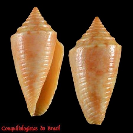 CLASSE: GASTROPODA: MARINHO FAMÍLIA: CONIDAE ESPÉCIE: Conasprella iansa (Petuch, 1979) Tamanho médio: 12 - 18 mm Profundidade: 1 - 25 metros Habitat: em fundos de detritos e areia coralígena (descrição original) Alimentação: carnívoro Frequência: raro Ocorrência no Brasil: RN e BA Localidade Tipo: Alcobaça, Bahia, Brasil Sinônimos: Conasprella bianchii (Petuch & Berschauer, 2018); Coltroconus bianchii Petuch & Berschauer, 2018 Descrição original: https://www.biodiversitylibrary.org/page/35514227#page/540/mode/1up WoRMS: https://www.marinespecies.org/aphia.php?p=taxdetails&id=834388 Foto A: Rio Grande do Norte. 18 mm. Col. C.Henckes Ilha de Santa Bárbara, Abrolhos, Bahia. 25 m prof. 12 mm Holótipo USNM