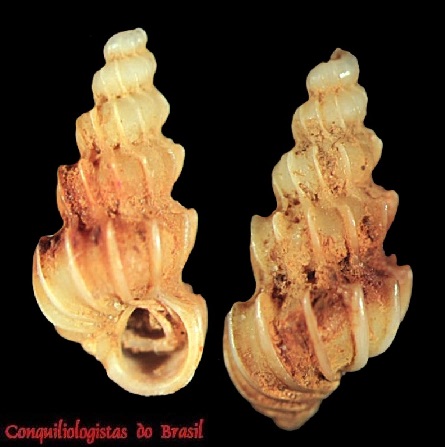 CLASSE: GASTROPODA: MARINHO FAMÍLIA: MURICIDAE ESPÉCIE: Favartia coltrorum Houart, 2005 Tamanho médio: 12 - 18 mm Profundidade: 20 - 25 m Habitat: em rochas, em agrupamentos de ostras ou alimentando-se de Brachidontes exustus (Radwin, 1976) Alimentação: carnívoro Frequência: incomum Ocorrência no Brasil: RN até ES Localidade Tipo: off Alcobaça, BA, Brasil Sinônimos: anteriormente identificada como Favartia nucea (Mörch, 1850) Etimologia: homenagem aos irmãos José & Marcus Coltro, malacologistas brasileiros Descrição original: Houart, R. 2005. Description of a new species of Favartia (Gastropoda: Muricidae: Muricopsinae) from Brazil Novapex 6 41-44. [Stated date: 10 Mar 2005.] WoRMs: https://www.marinespecies.org/aphia.php?p=taxdetails&id=723815 Malacolog: http://www.malacolog.org/search.php?nameid=11454 Foto A: HOLÓTIPO - off Alcobaça, Bahia. 15,6 mm. MORG – Museu Oceanográfico da Fundação Universidade do Rio Grande do Sul