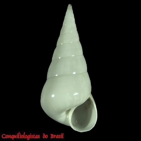CLASSE: GASTROPODA: MARINHO FAMÍLIA: TURRITELLIDAE ESPÉCIE: Turritella hookeri Reeve, 1849 Tamanho médio: 15 - 30 mm Profundidade: 10 - 160 m Habitat: fundos de areia, lodo e cascalho Alimentação: herbívoro Frequência: incomum Ocorrência no Brasil: AP até SP e ilhas oceânicas Localidade Tipo: desconhecida Descrição original: https://www.biodiversitylibrary.org/page/8967277#page/567/mode/1up WoRMS: https://www.marinespecies.org/aphia.php?p=taxdetails&id=446561 Malacolog: http://www.malacolog.org/search.php?nameid=1315 Foto A: São Sebastião, São Paulo. 23 mm. Col. S.Vanin