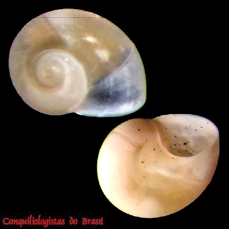 CLASSE: GASTROPODA: MARINHO FAMÍLIA: NATICIDAE ESPÉCIE: Tectonatica micra (F. Haas, 1953) Tamanho médio: 3 - 4 mm Profundidade: 0 - 15 metros Habitat: fundos arenos Alimentação: carnívoro Frequência: comum Ocorrência no Brasil: RJ e SP Localidade Tipo: Ilha Grande, State of Rio de Janeiro, Brazil Sinônimos: Natica micra Haas, 1953 Descrição original: não documentada. Referências: Haas, F. 1953. Mollusks of Ilha Grande, Rio de Janeiro, Brazil Fieldiana, Zoology 34 203-209. [Stated date: 24 Jul 1953.] WoRMs: https://www.marinespecies.org/aphia.php?p=taxdetails&id=533467 Malacolog: http://www.malacolog.org/search.php?nameid=2723 Foto A: Cabo Frio, RJ. 3,5 mm. Col. E.Schirrmeister