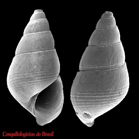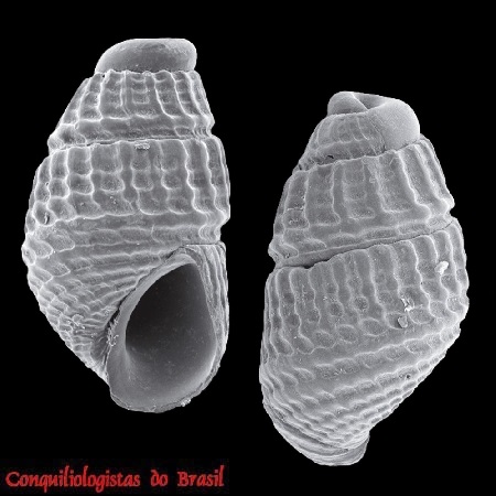 CLASSE: GASTROPODA: MARINHO FAMÍLIA: PYRAMIDELLIDAE ESPÉCIE: Parthenina biumbilicata Pimenta, 2012 Tamanho médio: 2 - 3 mm Profundidade: 17 - 97 m Habitat: em fundos arenosos Alimentação: carnívoro Frequência: rara Ocorrência no Brasil: RJ Localidade Tipo: off Rio de Janeiro, Brasil Etimologia: esta espécie é nomeada por seu umbílico conspícuo tanto no último verticilo teleoconcha quanto na protoconcha Descrição original: Pimenta A. D. (2012) Four new species and two new records of Odostomiinae (Gastropoda: Pyramidellidae) from Brazil. Zoologia (Curitiba) 29(5): 439–450. [October 2012]., available online at https://doi.org/10.1590/S1984-46702012000500007 WoRMS: https://www.marinespecies.org/aphia.php?p=taxdetails&id=712081 Molluscabase: https://www.molluscabase.org/aphia.php?p=taxdetails&id=712081 Foto A: off Rio de Janeiro. 2,35 e 2,41 mm. Holótipo e Parátipo. MORG - Museu Oceanográfico do Rio Grande