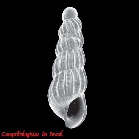 CLASSE: GASTROPODA: MARINHO FAMÍLIA: PYRAMIDELLIDAE ESPÉCIE: Eulimastoma exiguum Pimenta, 2012 Tamanho médio: 1 - 1,5 mm Profundidade: 88 - 450 m Habitat: em fundos arenosos Alimentação: carnívoro Frequência: rara Ocorrência no Brasil: RJ Localidade Tipo: off Bacia de Campos, Rio de Janeiro, Brasil Etimologia: exiguus, do latim = pobre, escasso. Esta espécie é nomeada devido à sua falta de escultura de concha Descrição original: Pimenta A. D. (2012) Four new species and two new records of Odostomiinae (Gastropoda: Pyramidellidae) from Brazil. Zoologia (Curitiba) 29(5): 439–450. [October 2012]., available online at https://doi.org/10.1590/S1984-46702012000500007 WoRMS: https://www.marinespecies.org/aphia.php?p=taxdetails&id=712079 Molluscabase: https://www.molluscabase.org/aphia.php?p=taxdetails&id=712079 Foto A: off Bacia de Campos, Rio de Janeiro. 1,3 mm. Holótipo MNRJ 16309 - Museu Nacional do Rio de Janeiro