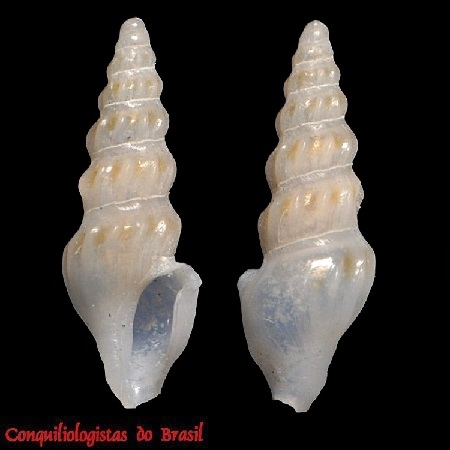 CLASSE: GASTROPODA: MARINHO FAMÍLIA: MANGELIIDAE ESPÉCIE: Kurtziella dorvilliae (Reeve, 1845) Tamanho médio: 8 - 10 mm Profundidade: 0 - 50 metros Habitat: areia lodosa Alimentação: carnívoro Frequência: incomum Ocorrência no Brasil: AP e ES Localidade Tipo: St. Vincent, Antilhas Sinônimos: Pleurotoma dorvilliae Reeve, 1845; Cryoturris dorvilliae (Reeve, 1845); Mangelia dorvilliae (Reeve, 1845); Pleurotoma forthiensis Reeve, 1845; Kurtziella caribbeana Weisbord, 1962; Kurtziella longa Usticke, 1969 Descrição original: https://www.biodiversitylibrary.org/page/11119161#page/273/mode/1up WoRMS: https://www.marinespecies.org/aphia.php?p=taxdetails&id=420347 Malacolog: http://www.malacolog.org/search.php?nameid=6836 Foto A: Espirito Santo. 8mm. Col. C.Henckes Foto B: off Guarapari, Espirito Santo. 60-80 m prof. 8,5 mm. Col. Femorale