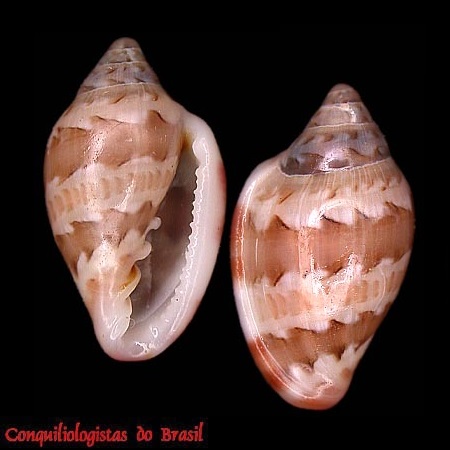 CLASSE: GASTROPODA: MARINHO FAMÍLIA: MARGINELLIDAE ESPÉCIE: Marginella purpurea T. Cossignani, 2006 Tamanho médio: 12 - 20 mm Profundidade: 10 - 110 metros Habitat: em substrato areno-lodoso Alimentação: carnívoro Frequência: incomum Ocorrência no Brasil: AP até BA e Abrolhos Localidade Tipo: Barra, Salvador, Bahia, Brasil Descrição original: Cossignani T. (2006) Tre nuove marginelle dal Brasile (Gastropoda: Prosobranchia, Marginellidae). Malacologia Mostra Mondiale 53: 12-15 WoRMS: https://www.marinespecies.org/aphia.php?p=taxdetails&id=390504 Foto A: Natal, Rio Grande do Norte. 15 mm. Col. C.Henckes