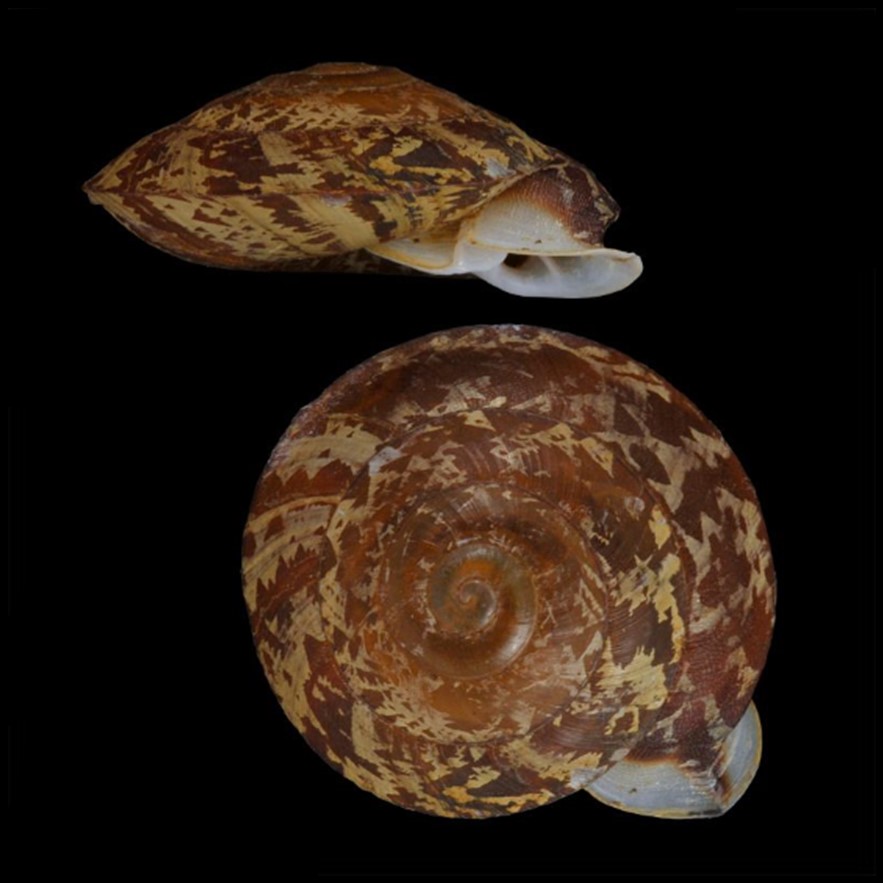 CLASSE: GASTROPODA: TERRESTRE FAMÍLIA: SCOLODONTIDAE ESPÉCIE: Luteostriatella variegata (F. Haas, 1949) Tamanho médio: ~10 mm Distribuição: Peru (Loreto) Localidade tipo: Peru, "Cerro Azul, on Rio Ucayali, Department of Loreto" Nome original: Austroselenites variegatus F. Haas, 1949 Sinônimos: Happia (Systrophiella) variegata (F. Haas, 1949); Happia variegata (F. Haas, 1949); Systrophia (Systrophiella) variegata (F. Haas, 1949) Redescrição: (Roosen & Breure, 2024): "Shell strongly depressed, conical-globular, medium-sized for family; suture shallow. Periostracum with thin, yellowish-white and reddish-brown axial streaks, three per 1 mm. Spire whorls slightly damaged, without sculpture. Teleoconch sculpture with minute growth lines. Aperture subcircular, with thin, simple peristome. Umbilicus of medium width, up to 31% of shell width” Fotos: (1,2) Roosen, M. T. & Breure, A. S. H. (2024): ...