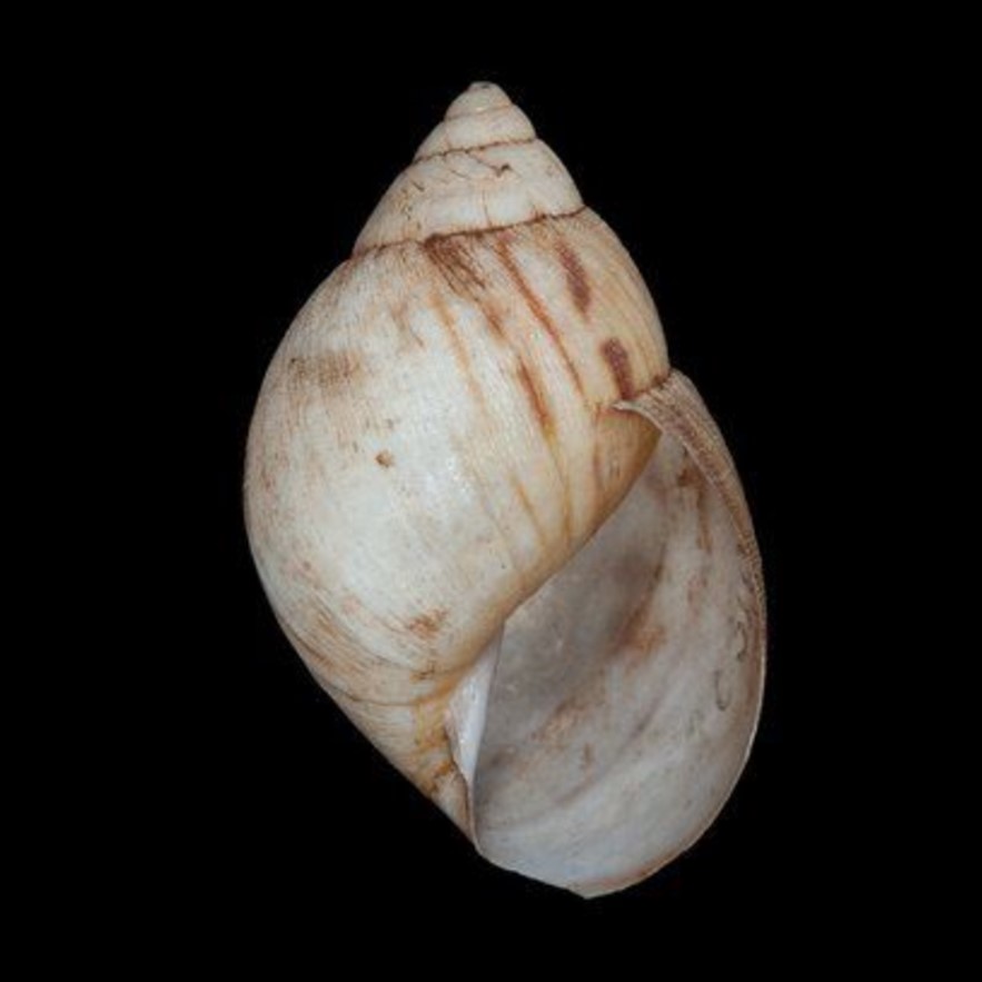 CLASSE: GASTROPODA: TERRESTRE FAMÍLIA: ORTHALICIDAE ESPÉCIE: Porphyrobaphe irrorata (Reeve, 1849) Tamanho médio: 77 mm Ocorrência: Equador, Província de Napo, “Oriente”; Província Pastaza, Puyo; ibid., Mera; Província Pichincha, 71.7 km SW Quito, rodovia para Santo Domingo; ibid., Santo Domingo; ibid., Mindo; ibid., próximo a Nanegal; ibid., Gualea; ibid., Rio Cinto; Vale do Río Pilaton; Província Tungurahua, Topo (Breure and Borrero 2008) Localidade tipo: “Brazil? New Granada?” Nome original: Bulimus irroratus Reeve, 1849 Sinônimos: Porphyrobaphe (Oxyorthalicus) irrorata (Reeve, 1849); Dryptus irroratus var. β elongata Miller 1878; Dryptus irroratus var. γ minor Miller 1878; Porphyrobaphe irroratus (Reeve, 1849) Fotos: (1,2) Breure & Mogollón, 2018: Natural History Museum, London: SYNTYPE de Bulimus irroratus Reeve, 1849, NHMUK 1975248, "Quito, Equador", doador: Hugh Cuming; (3) cortesia Carles Dorado (Allspira),...