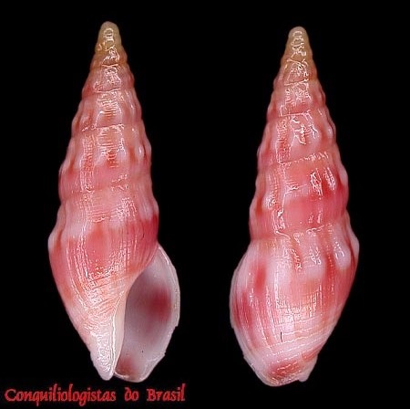 CLASSE: GASTROPODA: MARINHO FAMÍLIA: DRILLIIDAE ESPÉCIE: Bellaspira rosea Fallon, 2016 Tamanho médio: 9 - 13 mm Profundidade: 60 - 70 m Habitat: em fundos areia e cascalho Alimentação: carnívoro Frequência: raro Ocorrência no Brasil: ES Localidade Tipo: Espírito Santo, Brasil Descrição original: Fallon P.J. (2016). Taxonomic review of tropical western Atlantic shallow water Drilliidae (Mollusca: Gastropoda: Conoidea) including descriptions of 100 new species. Zootaxa. 4090(1): 1-363. (look up in IMIS), available online at https://doi.org/10.11646/zootaxa.4090.1.1 WoRMS: https://www.marinespecies.org/aphia.php?p=taxdetails&id=871899 Foto A: Guarapari, Espirito Santo. 14 mm. Col. C.Henckes Foto B: off Guarapari, Espirito Santo. 60 - 70 m prof. 10,3 mm. Femorale