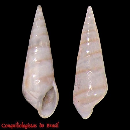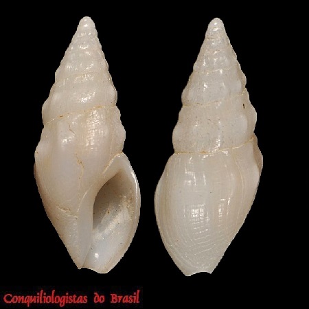 CLASSE: GASTROPODA: MARINHO FAMÍLIA: MANGELIIDAE ESPÉCIE: Benthomangelia antonia (Dall, 1881) Tamanho médio: 10 - 15 mm Profundidade: 124 - 3834 metros Habitat: fundos areno-lodosos Alimentação: carnívoro Frequência: raro Ocorrência no Brasil: ES e RS Localidade Tipo: Cape San Antonio, Cuba Descrição original: https://www.biodiversitylibrary.org/page/6353276#page/41/mode/1up WoRMS: https://www.marinespecies.org/aphia.php?p=taxdetails&id=139222 Malacolog: http://www.malacolog.org/search.php?nameid=6452 Foto A: off Espirito Santo. 10 mm. Col. S.Vanin
