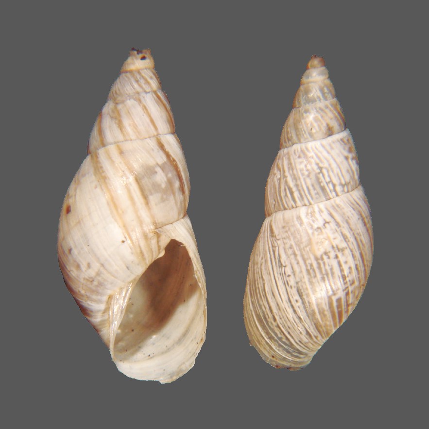 CLASSE: GASTROPODA: TERRESTRE FAMÍLIA: BULIMULIDAE ESPÉCIE: Bostryx piuranus (Albers, 1854) Tamanho médio: nd Ocorrência: Peru Localidade tipo: Peru, "Peruvia septentrionalis, propre oppidum Piura" Nome original: Bulimus piuranus Albers, 1854 Fotos: Köhler, 2007: Museum für Naturkunde, Humboldt Universität, Berlin, LECTOTYPE de Bostryx piuranus, ZMB 10.289a Figura: Breure, 2016: (66-67) Drymaeus (Mesembrinus) multifasciatus (Lamarck, 1822), SYNTYPE, MHNG-INVE-51167 (H = 25.7mm); (68-71) Bostryx albicolor (Morelet, 1860), (68) SYNTYPE de Bulimus lesueureanus Morelet, 1860, MHNG-INVE-60380 (H = 21.1mm), (69) SYNTYPE de Bulimus albicolor Morelet, 1863, MHNG-INVE-60231 (H = 25.4), (70) provável SYNTYPE de Bulimus cercicola Morelet, 1863, MHNG-INVE-60260 (H = 19.6); (71) PARALECTOTYPE de Bulimus orophilus Morelet, 1863, MHNG-INVE-60289 (H = 23.3); (72) Naesiotus apodemetes (d’Orbigny, 1835), SYNTYPE, MHNG-INVE-60419 (H = 25.5); (73) Bostryx andoicus (Morelet, 1863), PARALECTOTYPE, MHNG-INVE-60235 (H = 23.5); (74-75) Bostryx hennahi (J.E. Gray, 1830); (74) PARALECTOTYPE de Helix...