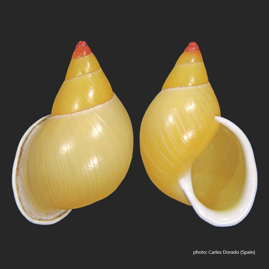 CLASSE: GASTROPODA: TERRESTRE FAMÍLIA: BULIMULIDAE ESPÉCIE: Drymaeus similaris (J. Moricand, 1856) Tamanho médio: 26 mm Distribuição: Peru (San Martín), Brasil Localidade tipo: “Moyobamba", Peru Habitat: vive em árvores e arbustos Nome original: Bulimus similaris J. Moricand, 1856 Sinônimos: Drymaeus (Drymaeus) similaris (J. Moricand, 1856) Comentários: Segundo Breure & Ablett, 2024: "Moricand não informou o número de espécimes em que a descrição foi baseada. A etiqueta de Drymaeus similaris tem um erro ortográfico da localidade, ao invés de “Terapolo” deveria ser Tarapoto, que fica perto de Moyobamba, Peru. Em MHNG, Breure (2016: 82,Fig 51) encontrou sete síntipos na coleção Moricand (MHNG-MOLL-63531)" Fotos: (1) Breure et al. 2024, Musée d’Histoire Naturelle, Geneva: SYNTYPE MHNG-MOLL 63531; (2) Breure & Ablett, 2024: SYNTYPE ZMB/Moll 264729 ...