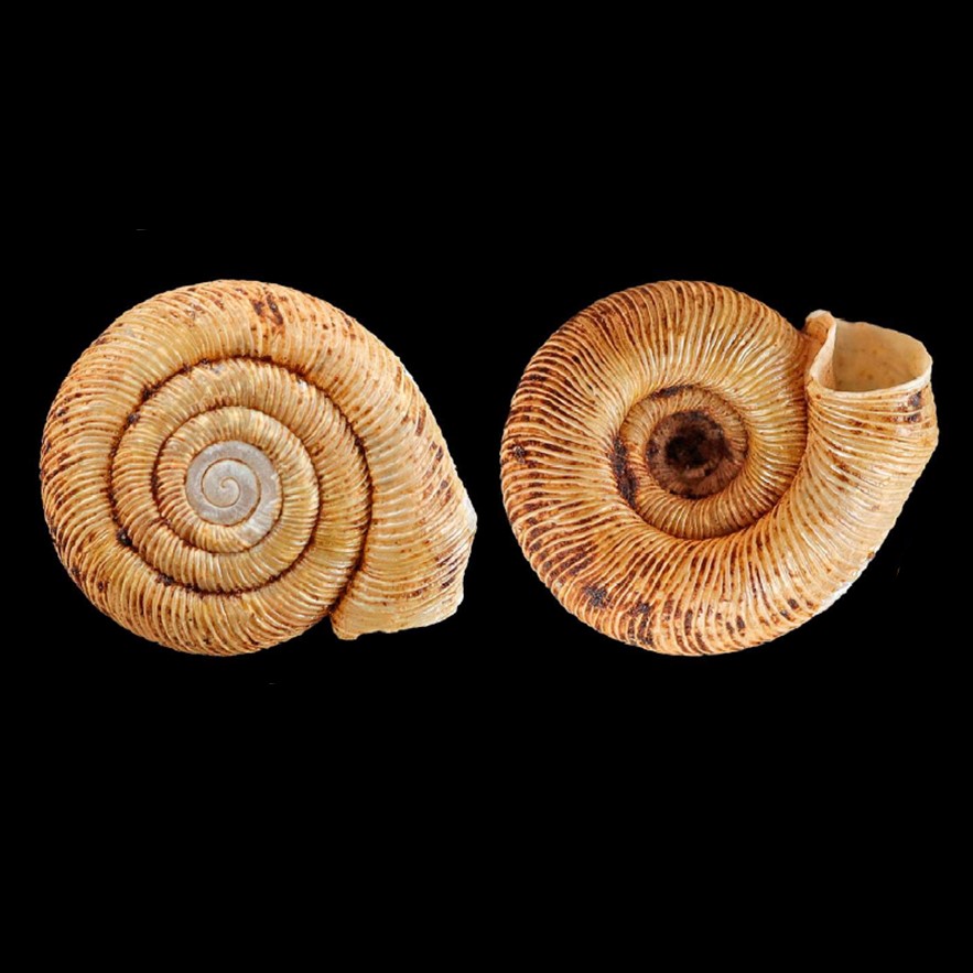 CLASSE: GASTROPODA: TERRESTRE FAMÍLIA: BULIMULIDAE ESPÉCIE: Drymaeus magus (J. A. Wagner, 1827) Tamanho médio: 22 mm Habitat: vive em árvores e arbustos, habita troncos e folhas de árvores, principalmente em florestas estacionais semidecíduas da Mata Atlântica interiorana e do Cerrado (Rosa et al. 2025) Ocorrência: Brasil (Minas Gerais, São Paulo, Rio de Janeiro, Paraná) Localidade tipo: "Brasilien", sem localidade específica Sinônimos: Bulimus inflatus Spix, 1827; Bulimus magus J. A. Wagner, 1827 Fotos: (1) Zoologische Staatssammlung München, LECTOTYPE ZSM 20020093; (2) registro de Drymaeus magus no iNaturalist, foto: 64245662, postado por Rafael de Lima Rosa, São Paulo, iii.2020 Figura: Rosa et al. 2025: coleção de Drymaeus magus demonstrando a morfologia da concha: (A) LECTOTYPE ZSM 20020093; (B–F) Coleção Malacológica...