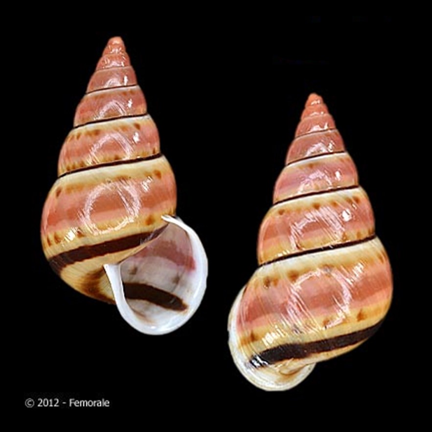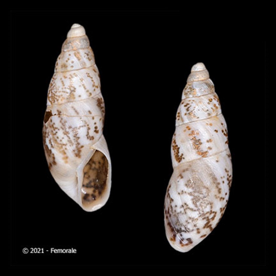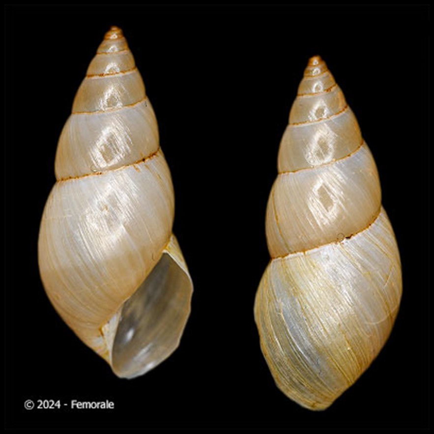 CLASSE: GASTROPODA: TERRESTRE FAMÍLIA: BULIMULIDAE ESPÉCIE: Oxychona maculata Salvador & Cavallari, 2013 Tamanho médio: 16 - 19 mm Habitat: arborícolas, dados registrados nos rótulos das amostras apontam para uma espécie que vive em árvores Frequência: Raro Ocorrência: Brasil [Bahia (municípios de Ilhéus e Itapetininga)] Localidade tipo: Ilhéus, Bahia Etimologia: o nome deriva da palavra em latim "Mácula", que significa "manchas"; uma referência à faixa espiral manchada, de cor marrom, da espécie Foto: (1) cortesia Femorale, 2022. Bahia, 17 mm; (2) animal vivo: iNaturalist observação 357521269, crédito: Everton de Amorim Freitas Filho, alguns direitos reservados (CC BY-NC), Nossa Senhora da Luz, São Lourenço da Mata - Pernambuco, Brasil, 29.ii.2024 Figura: Salvador & Cavallari, 2013: Oxychona maculata;...