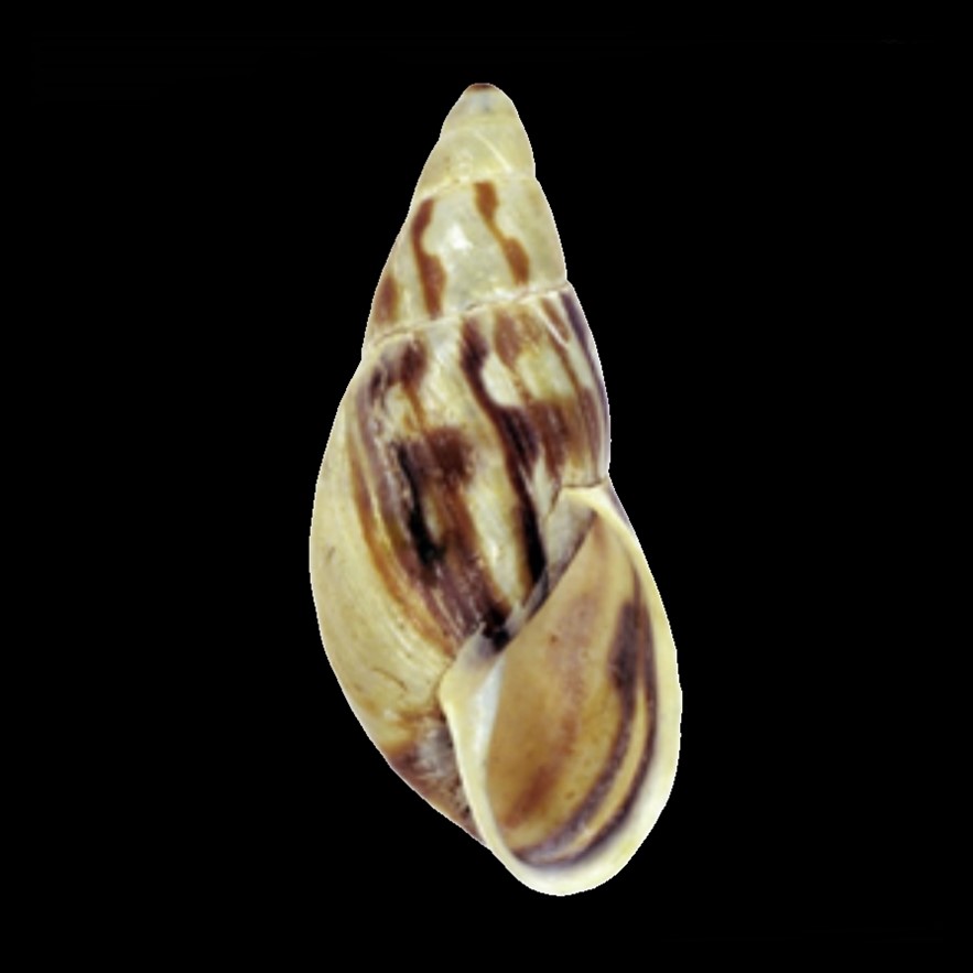 CLASSE: GASTROPODA: TERRESTRE FAMÍLIA: BULIMULIDAE ESPÉCIE: Drymaeus magus (J. A. Wagner, 1827) Tamanho médio: 22 mm Habitat: vive em árvores e arbustos, habita troncos e folhas de árvores, principalmente em florestas estacionais semidecíduas da Mata Atlântica interiorana e do Cerrado (Rosa et al. 2025) Ocorrência: Brasil (Minas Gerais, São Paulo, Rio de Janeiro, Paraná) Localidade tipo: "Brasilien", sem localidade específica Sinônimos: Bulimus inflatus Spix, 1827; Bulimus magus J. A. Wagner, 1827 Fotos: (1) Zoologische Staatssammlung München, LECTOTYPE ZSM 20020093; (2) registro de Drymaeus magus no iNaturalist, foto: 64245662, postado por Rafael de Lima Rosa, São Paulo, iii.2020 Figura: Rosa et al. 2025: coleção de Drymaeus magus demonstrando a morfologia da concha: (A) LECTOTYPE ZSM 20020093; (B–F) Coleção Malacológica...