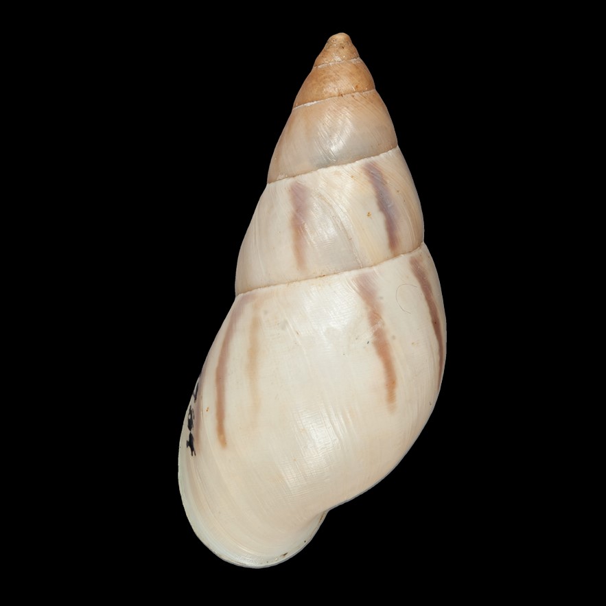 CLASSE: GASTROPODA: TERRESTRE FAMÍLIA: BULIMULIDAE ESPÉCIE: Drymaeus similaris (J. Moricand, 1856) Tamanho médio: 26 mm Distribuição: Peru (San Martín), Brasil Localidade tipo: “Moyobamba", Peru Habitat: vive em árvores e arbustos Nome original: Bulimus similaris J. Moricand, 1856 Sinônimos: Drymaeus (Drymaeus) similaris (J. Moricand, 1856) Comentários: Segundo Breure & Ablett, 2024: "Moricand não informou o número de espécimes em que a descrição foi baseada. A etiqueta de Drymaeus similaris tem um erro ortográfico da localidade, ao invés de “Terapolo” deveria ser Tarapoto, que fica perto de Moyobamba, Peru. Em MHNG, Breure (2016: 82,Fig 51) encontrou sete síntipos na coleção Moricand (MHNG-MOLL-63531)" Fotos: (1) Breure et al. 2024, Musée d’Histoire Naturelle, Geneva: SYNTYPE de Drymaeus similaris, MHNG-MOLL 63531; (2) Breure & Ablett, 2024: Museum für...