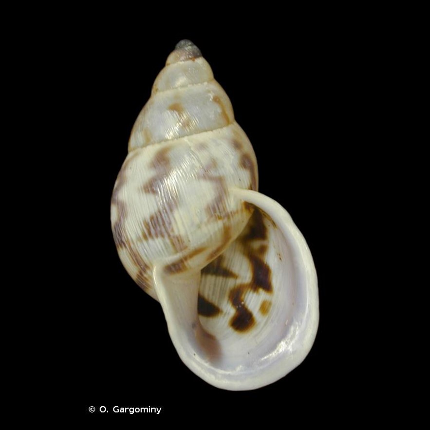 CLASSE: GASTROPODA: TERRESTRE FAMÍLIA: BULIMULIDAE ESPÉCIE: Drymaeus arcuatostriatus (L. Pfeiffer, 1855) Tamanho médio: 30 mm Habitat: vive em árvores e arbustos nas Florestas úmidas de Ucayalí Ocorrência: Peru (Huánuco, Tingo María, Vale do Rio Monson), Guiana Francesa, Suriname, Brasil ? Localidade tipo: "Peru" Nome original: Bulimus arcuatostriatus L. Pfeiffer, 1855 Sinônimos: Drymaeus (Drymaeus) arcuatostriatus (L. Pfeiffer, 1855); Drymaeus meesi Breure, 1976; Drymaeus glaucostomus meesi Breure, 1976 Fotos: (1) MNHN & OFB [Ed]. 2003-2025. Fiche de Drymaeus arcuatostriatus (L. Pfeiffer, 1855). Inventaire national du patrimoine naturel (INPN); (2) Breure & Ablett, 2014: Natural History Museum, London: LECTOTYPE NHMUK 1975455, coll. Hugh Cuming, 27.7 mm; (3) Gargominy et al. 2025: Drymaeus arcuatostriatus, Saül. Photograph by S. Sant (https://www.inaturalist.org/observations/74538163) Figura 1:...