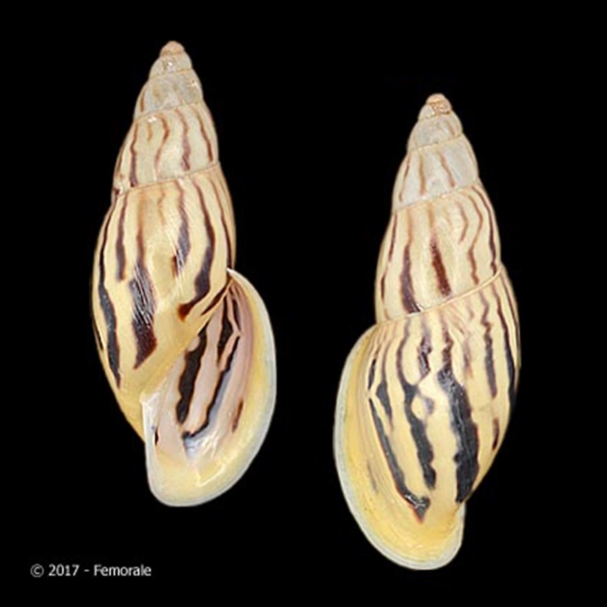 CLASSE: GASTROPODA: TERRESTRE FAMÍLIA: BULIMULIDAE ESPÉCIE: Drymaeus nigroflavus Simone & Celzard, 2024 Tamanho médio: 27 mm Habitat: vive em árvores e arbustos na Floresta Atlântica Ocorrência: Brasil (Bahia, extremo Sul do Estado) Localidade tipo: Bahia, Itapebi, margens do Rio Jequitinhonha [Weslley Vailant-Mattos col., xi.2020] Altitude: ~50 m Nome original: Drymaeus nigroflavus Simone & Celzard, 2024 Etimologia: o nome da espécie é uma contração de duas palavras em Latim em referência às suas listras pretas (nigro) que se destacam contra um fundo branco-amarelado (flavus = amarelo) Fotos: (1) cortesia Femorale, 2020, TOPOTYPE, 27.1 e 27.2mm respectivamente Figura: Simone, L. R. L. & Celzard, A. (2024): Museu de Zoologia de São Paulo: (A-F) HOLOTYPE MZSP 159000 (L 27.6 mm); (G-H)...