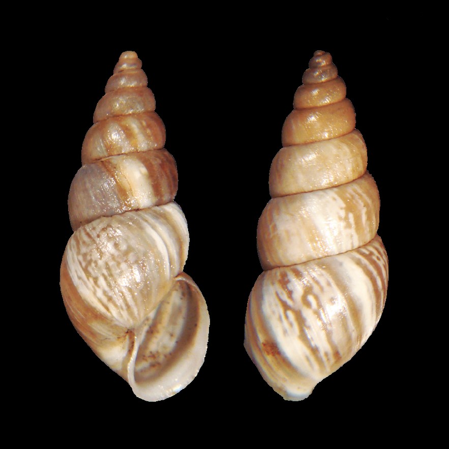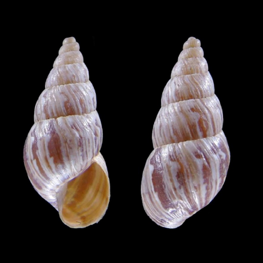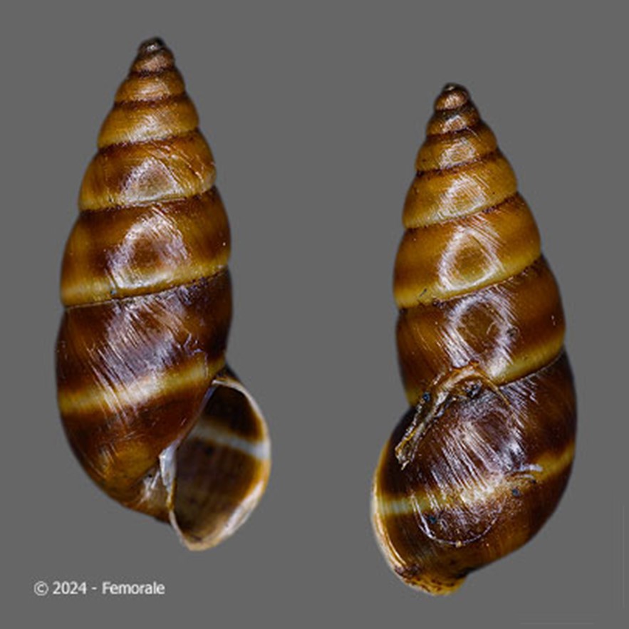 CLASSE: GASTROPODA: TERRESTRE FAMÍLIA: BULIMULIDAE ESPÉCIE: Oxychona maculata Salvador & Cavallari, 2013 Tamanho médio: 16 - 19 mm Habitat: arborícolas, dados registrados nos rótulos das amostras apontam para uma espécie que vive em árvores Frequência: Raro Ocorrência: Brasil [Bahia (municípios de Ilhéus e Itapetininga)] Localidade tipo: Ilhéus, Bahia Etimologia: o nome deriva da palavra em latim "Mácula", que significa "manchas"; uma referência à faixa espiral manchada, de cor marrom, da espécie Foto: (1) cortesia Femorale, 2022. Bahia, 17 mm; (2) animal vivo: iNaturalist observação 357521269, crédito: Everton de Amorim Freitas Filho, alguns direitos reservados (CC BY-NC), Nossa Senhora da Luz, São Lourenço da Mata - Pernambuco, Brasil, 29.ii.2024 Figura: Salvador & Cavallari, 2013: Oxychona maculata;...