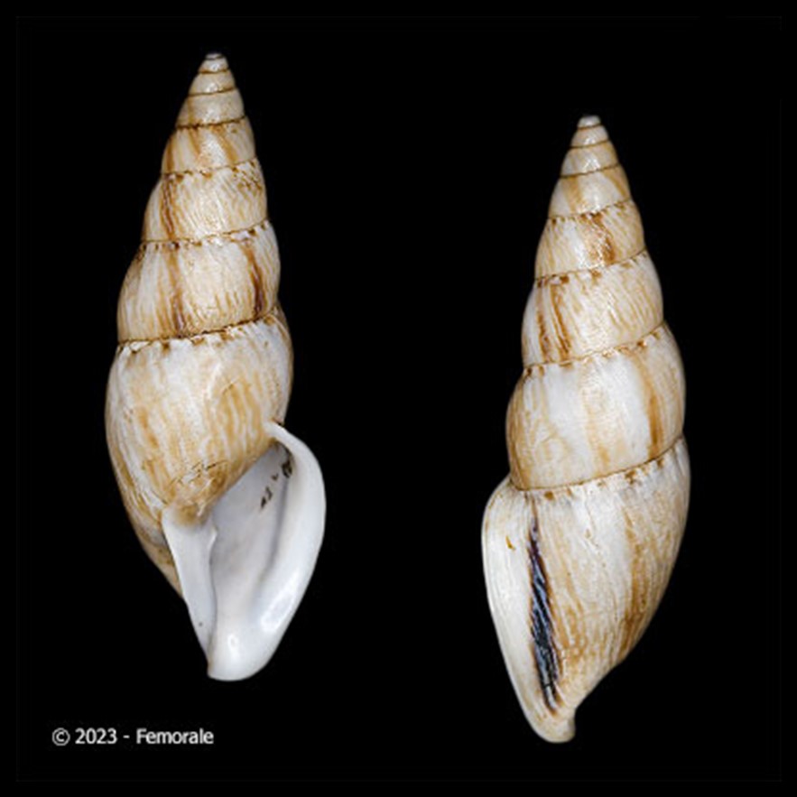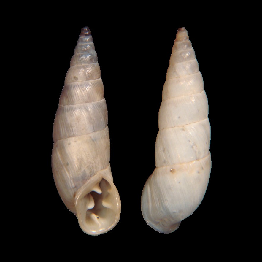 CLASSE: GASTROPODA: TERRESTRE FAMÍLIA: CYCLODONTINIDAE ESPÉCIE: Cyclodontina fusiformis (Menke, 1828) Tamanho médio: 22 mm Ocorrência: Brasil (Mato Grosso, Rio de Janeiro, São Paulo, Santa Catarina, Paraná) Localidade tipo: desconhecido (Patriam ignoro) Nome original: Scarabus fusiformis Menke, 1828 Sinônimos: Bulimus catharinae L. Pfeiffer, 1857; Cyclodontina catharinae (L. Pfeiffer, 1857); Odontostomus (Bahiensis) fusiformis (Menke, 1828); Scarabus fusiformis Menke, 1828 Comentário: Molluscabase, 2024 considera Cyclodontina fusiformis como sinônimo de Bulimus catharinae L. Pfeiffer, 1857 ou Cyclodontina catharinae, porém Simone, 2006 considera como espécies distintas. O registro ANSP 71256, doado por v. Ihering, H. (1897), é para o Estado de São Paulo. Foto: (1) cortesia Femorale, 21mm; (2) NCB Naturalis, Leiden: Odontostomus (Bahiensis) fusiformis, RMNH.MOL.266374 Figura: Breure, A. S. H. & Ablett,...