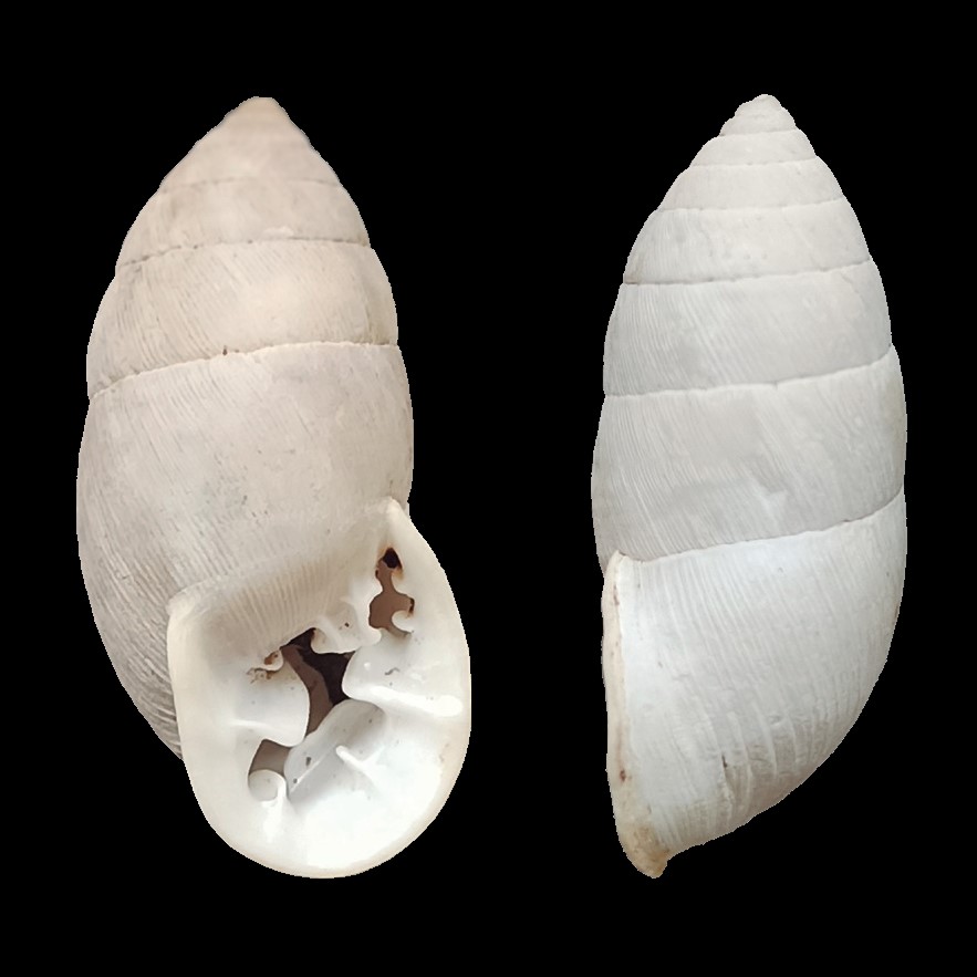 CLASSE: GASTROPODA: TERRESTRE FAMÍLIA: CYCLODONTINIDAE ESPÉCIE: Burringtonia exesa (Spix, 1827) Tamanho médio: 33 - 36 mm Habitat: arborícola, vive em árvores e arbustos Ocorrência: Brasil (Bahia, Rio de Janeiro) Nome original: Clausilia exesa Spix, 1827 Sinônimos: Bulimus exesus (Spix, 1827); Clausilia exesa Spix, 1827; Pupa ringens Jay 1836; Burringtonia ringens (Jay, 1836) Fotos: (1-3) cortesia Femorale, Burringtonia exesa (Spix, 1827), Bahia, 34.3, 35 e 39mm; (4) animal vivo: iNaturalist, crédito: Gabriel Leite, 28.ix.2024, Pau Brasil, Bahia; (5) Itabuna, Bahia. 34mm; (3) American Museum of Natural History, NY: SYNTYPE de Pupa ringens Jay 1836, AMNH 40788, 41mm Fontes: Descrição original: como ( Clausilia exesa Spix, 1827) Wagner, J. A. (1827). Testacea fluviatilia quae in itinere per Brasiliam...