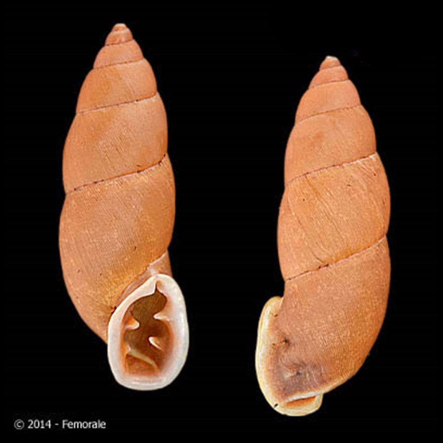 CLASSE: GASTROPODA: TERRESTRE FAMÍLIA: ODONTOSTOMIDAE ESPÉCIE: Gonyostomus elinae Simone, 2016 Tamanho médio: 45 - 60 mm Habitat: possivelmente arbórea (Simone, 2016) Frequência: Raro Ocorrência: Brasil (São Paulo) Localidade tipo: Iporanga, PETAR (Alto do Ribeira State Park), São Paulo Nome original: Gonyostomus elinae Simone, 2016 Etimologia: nome da espécie é uma homenagem a Maria Elina Bichuette, líder de um time que conduz extensos projetos sobre a fauna cavernícola. Doou diversas amostras de moluscos, num significativo aumento do conhecimento sobre a malacofauna brasileira Fotos: (1-2) cortesia Femorale, 2016, Iporanga, São Paulo, 62.1mm e 42.8mm respectivamente Figura: Simone, 2016. Gonyostomus elinae: (1-4) HOLOTYPE Museu de Zoologia de São Paulo MZSP 106226 (L = 46.9 mm); (5) PARATYPE MZSP 106237 (L= 46.2 mm);...