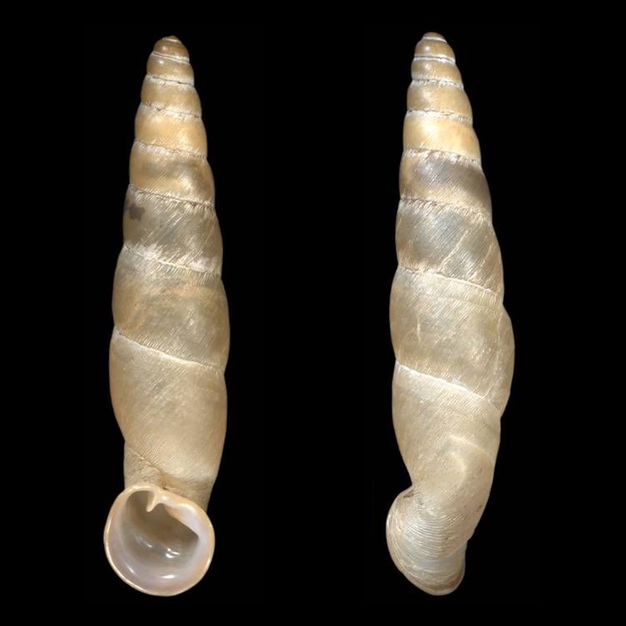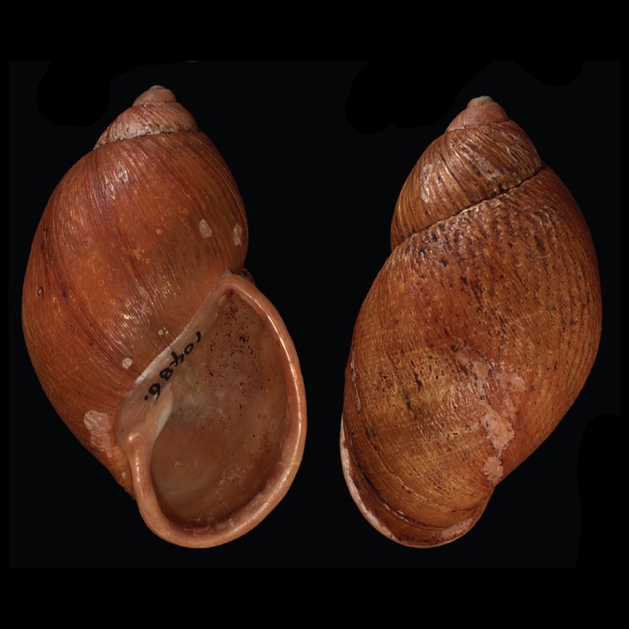 CLASSE: GASTROPODA: TERRESTRE FAMÍLIA: ORTHALICIDAE ESPÉCIE: Orthalicus bifulguratus (Reeve, 1849) Tamanho médio: 57 mm Ocorrência: Colômbia, Equador (El Oro, Pichincha, Tungurahua) Localidade tipo: Colômbia (“Andes of Columbia”) Habitat: vive em árvores e arbustos Nome original: Bulimus bifulguratus Reeve, 1849 Fotos: (1) Natural History Museum, London; LECTOTYPE de Orthalicus bifulguratus Reeve, 1849, NHMUK 20140082, "Andes of Colombia", coleção: Hugh Cuming; (2) animal vivo: Orthalicus bifulguratus, observação iNaturalist 467058792, Equador, crédito: Holger Sanchez, i.2025 Figura: Breure, A. S. H. & Araujo, R. (2017): (A-B) Corona regalis (Hupé, 1857); (A) MNCN 15.05/1896; (B) MNCN 15.05/61001; (C) Kara thompsonii (Pfeiffer, 1845), MNCN 15.05/13701; (D) Orthalicus bifulguratus (Reeve, 1849), MNCN 15.05/15386; (E) Orthalicus princeps (Broderip in Sowerby I & II, 1833), MNCN 15.05/1898; (F) Porphyrobaphe irrorata (Reeve, 1849), MNCN 15.05/13287. Linha da escala = 1 cm ...