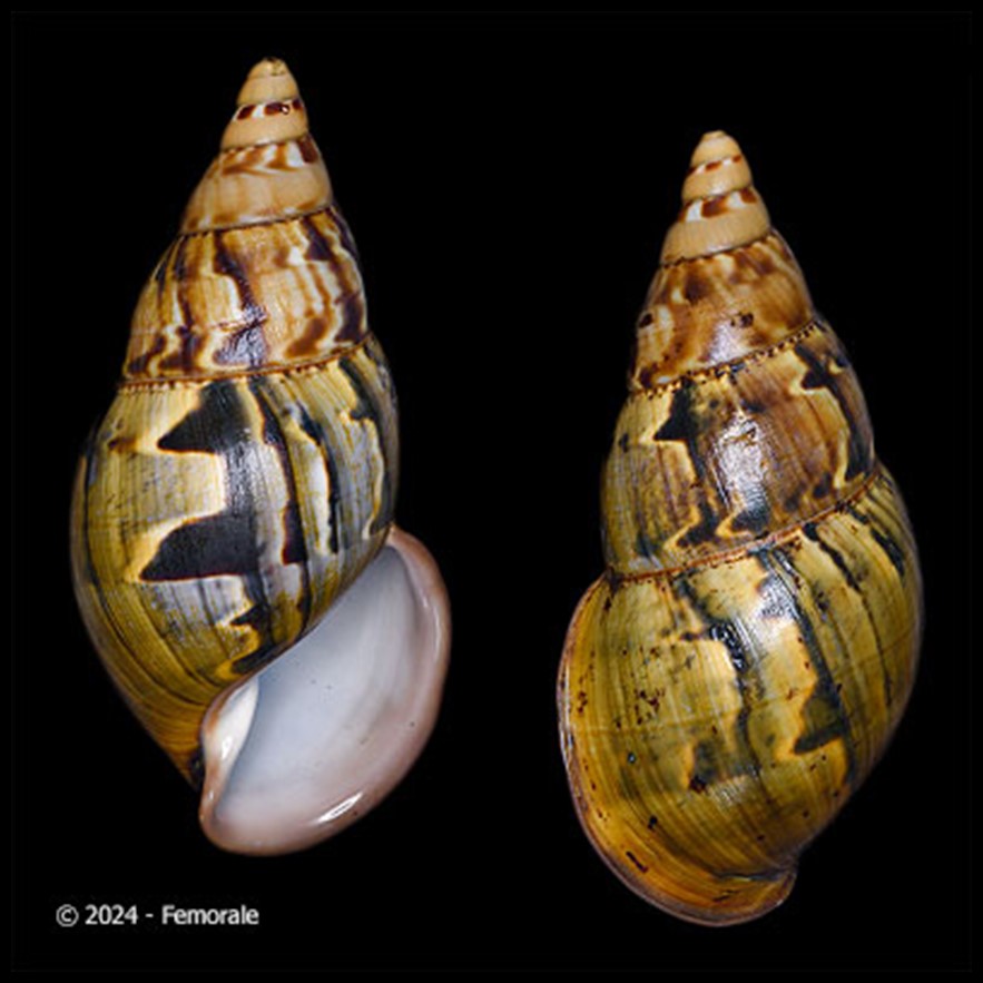CLASSE: GASTROPODA: TERRESTRE FAMÍLIA: ACHATINIDAE ESPÉCIE: Zoniferella bizonalis (Germain, 1907) Tamanho médio: 23 mm Ocorrência: Equador (Pichincha) Localidade tipo: Equador, Cerro de San Tadeo [Mission Rivet 1904] Nome original: Synapterpes (Zoniferella) riveti var. bizonalis Germain, 1907 Sinônimos: Synapterpes bicingulatus Fulton, 1908 Fotos: (1,2) cortesia Femorale, 2017, Equador, Província de Pichincha, 22mm; (3) Museu Nacional de História Natural, Paris: SYNTYPE de Synapterpes (Zoniferella) riveti var. bizonalis Germain, 1907, MNHN 2000-4671, Equador, Pichincha, "Cerro de San Tadeo [Mission Rivet 1904]", 21.1mm; (4) Natural History Museum, London: SYNTYPE de Synapterpes bicingulatus Fulton, 1908, NHMUK 1908.7.6.89, 20.1 mm Fontes: Descrição original: (como Synapterpes (Zoniferella) riveti var. bizonalis Germain, 1907) Germain, L. (1907). Sur quelques Mollusques de la République de...