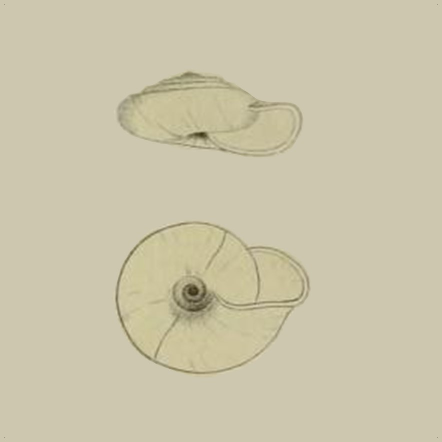 CLASSE: GASTROPODA: TERRESTRE FAMÍLIA: SCOLODONTINAE ESPÉCIE: Happia ammonoceras (Reeve, 1854) Tamanho médio: 4 mm Distribuição: Colômbia, Brasil ? (São Paulo, Piquete) Localidade tipo: Santa Anna, Colômbia Nome original: Helix ammonoceras Reeve, 1854 Sinônimos: Drepanostomella ammonoceras (L. Pfeiffer, 1855) Redescrição: Roosen, M. T. & Breure, A. S. (2024): "Shell medium-sized, discoid, translucent, with a sunken spire. Embryonic whorl smooth. After one whorl, eight slightly oblique spiral rows consisting of densely spaced punctuations develop on last quarter of shell between suture and periphery. Spiral rows visible on entire shell and continue over periphery and onto base, only to disappear on last quarter whorl in umbilicus. Flexuous growth striae also present on entire shell but stronger towards aperture. Aperture deflected, rounded-trapezoidal in shape, with a small incision at...