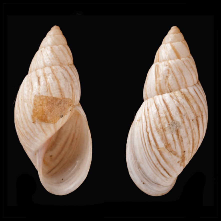 CLASSE: GASTROPODA: TERRESTRE FAMÍLIA: BULIMULIDAE ESPÉCIE: Mesembrinus miltochrous (Albers, 1854) Tamanho médio: 31 mm Ocorrência: Peru Localidade tipo: "Columbia [sic] ad fluvium Maranhon" Comentários: Breure et al. 2024 destaca que "o rio Marañón percorre 1.400 km por vários departamentos do Peru. O material foi coletado por Wrszewicz, mas não sabemos o seu itinerário. Martens (1860: 213) corrigiu a localidade-tipo afirmando “am ob.[eren] Maranhão” [no alto Marañon], e Pilsbry (1898 [1897–1898]: 290) modificou a localidade tipo adicionando “ou Equador”, mas ambas as emendas foram feitas sem qualquer informação adicional" Habitat: vive em árvores e arbustos Nome original: Bulimus miltochrous Albers, 1854 Sinônimos: Drymaeus (Mesembrinus) miltochrous (Albers, 1854); Drymaeus miltochrous (Albers, 1854) Fotos: (1,2) Breure et al. 2024: LECTOTYPE ZMB.MOLL 101791, 31mm ...