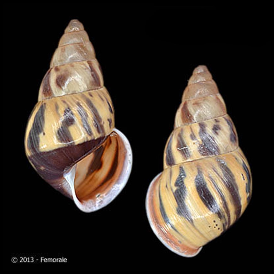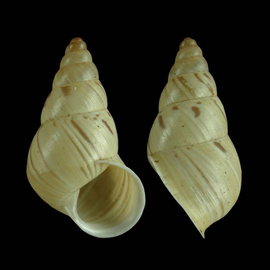 CLASSE: GASTROPODA: TERRESTRE FAMÍLIA: SIMPULOPSIDAE ESPÉCIE: Leiostracus subtuszonatus (Pilsbry, 1899) Tamanho médio: 25 mm Habitat: Mata Atlântica, vive em árvores e arbustos Ocorrência: Brasil (Bahia, Minas Gerais) Localidade tipo: NEOTYPE: Salvador, Rodrigo & Cavallari, Daniel. (2013): Ilhéus , Bahia, ~52 m de altitude Sinônimo: Drymaeus (Leiostracus) onager var. subtuszonata Pilsbry, 1899 Etimologia: o nome da espécie “subtuszonatus” indica que esse é o padrão de cores “típico” das bandas axiais subitamente interrompido por uma faixa em espiral, uma útil característica diagnóstica desta espécie Fotos: (1) Salvador & Cavallari, 2013: Museu de Zoologia de São Paulo, NEOTYPE MZSP 108040, 28.5 mm; (2) Natural History Museum, London: PARALECTOTYPE de Drymaeus (Leiostracus) onager subtuszonatus Pilsbry, 1899, NHMUK 20130094, coll. Hugh Cuming ...