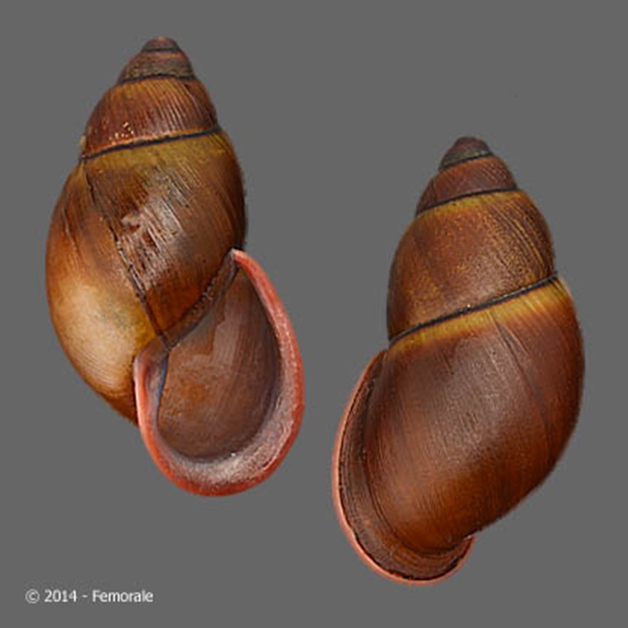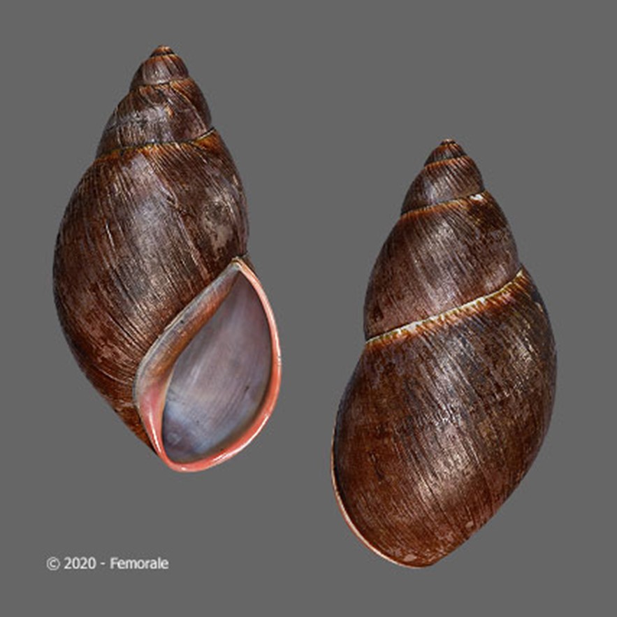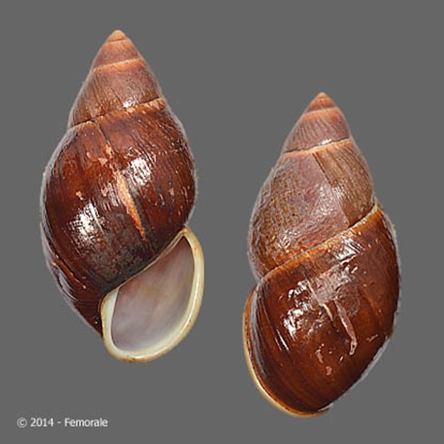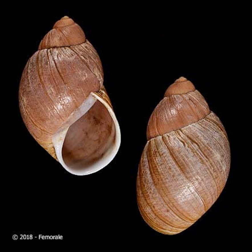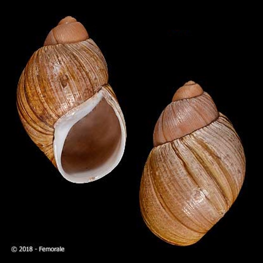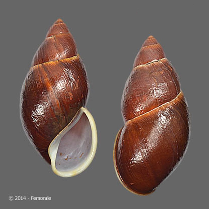 CLASSE: GASTROPODA: TERRESTRE FAMÍLIA: STROPHOCHEILIDAE ESPÉCIE: Megalobulimus bronni (L. Pfeiffer, 1847) Tamanho médio: 70 - 93 mm Habitat: vive no solo, sob folhas ou enterrada parte do tempo Alimentação: provavelmente Herbívoro Ocorrência: Brasil (Espírito Santo, Minas Gerais, São Paulo) Localidade tipo: Brasil, sem localidade específica Sinônimos: Bulimus bronni L. Pfeiffer, 1847; Strophocheilus (Borus) bronni (L. Pfeiffer, 1847); Strophocheilus (Megalobulimus) bronni(L. Pfeiffer, 1847) Fotos: cortesia Femorale: Megalobulimus bronni (1) 93mm; (2) 94 mm Fontes: Descrição original: (como Bulimus bronni L. Pfeiffer, 1847) Pfeiffer, L. (1847). Diagnosen neuer Heliceen. Zeitschrift für Malakozoologie. Cassel. 4 (1): 12-16 [January 1847]; 4 (2): 31-32 [February 1847]; 4 (5): 65-71 [May 1847]; 4 (6): 81-84 [June 1847], disponível online em https://www.biodiversitylibrary.org/page/16292006 página(s): 31 Simone, L....