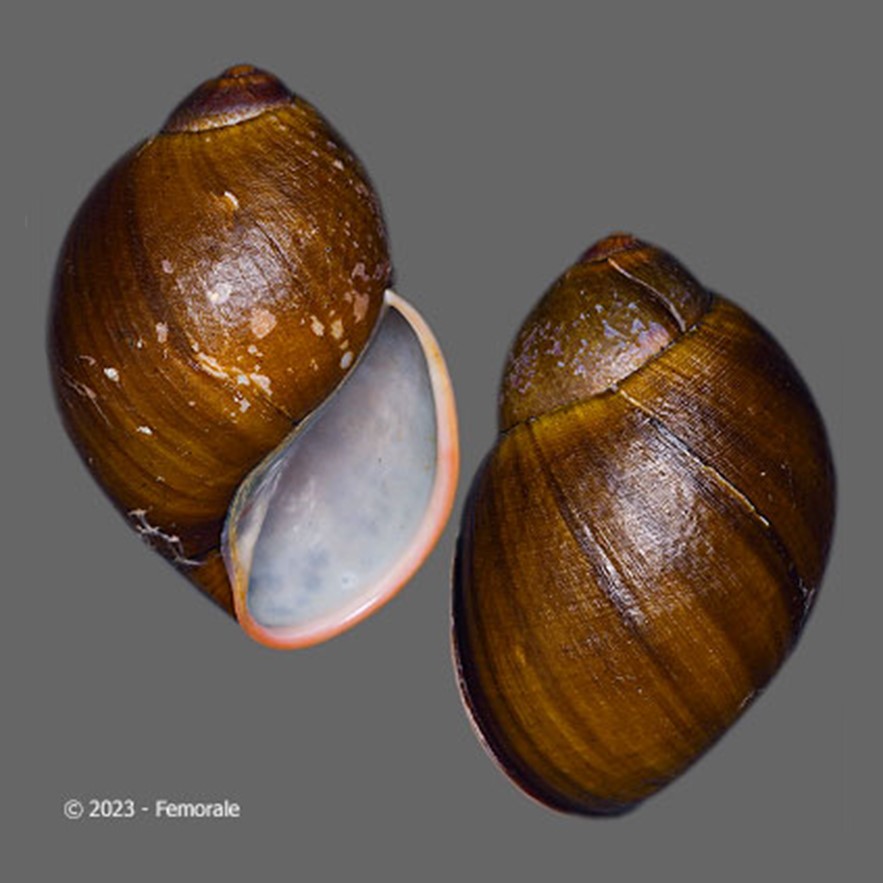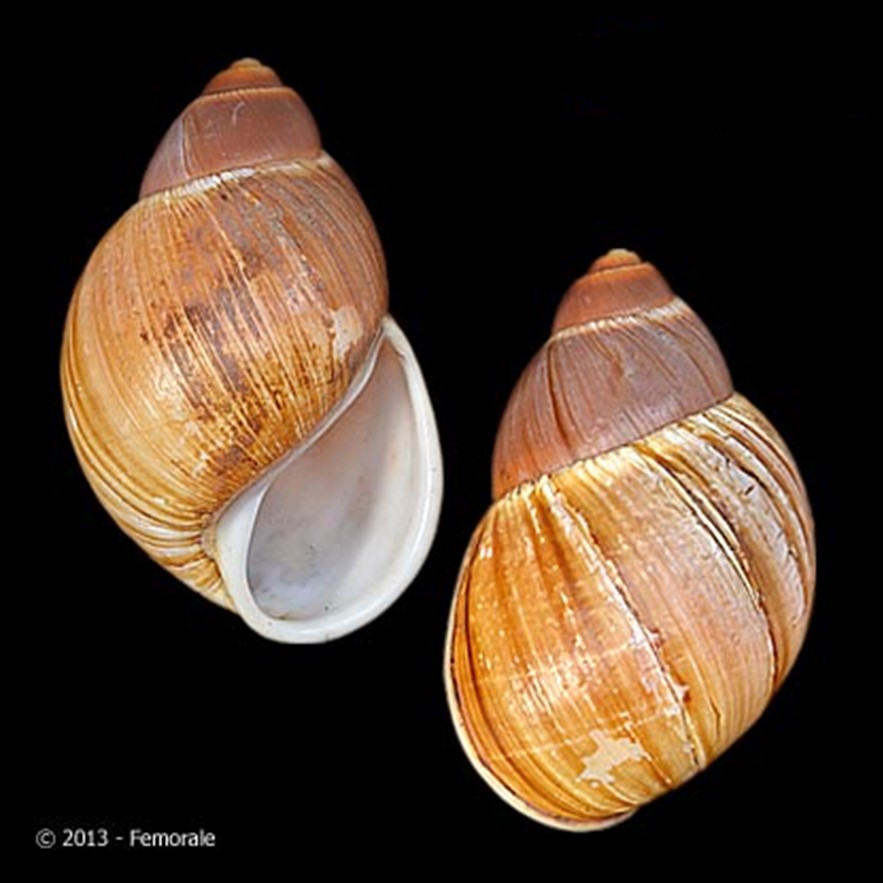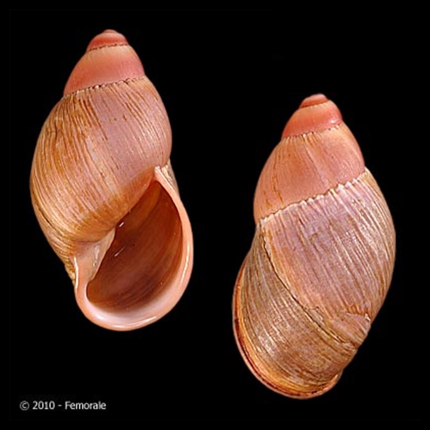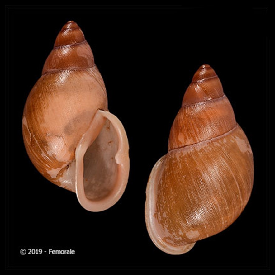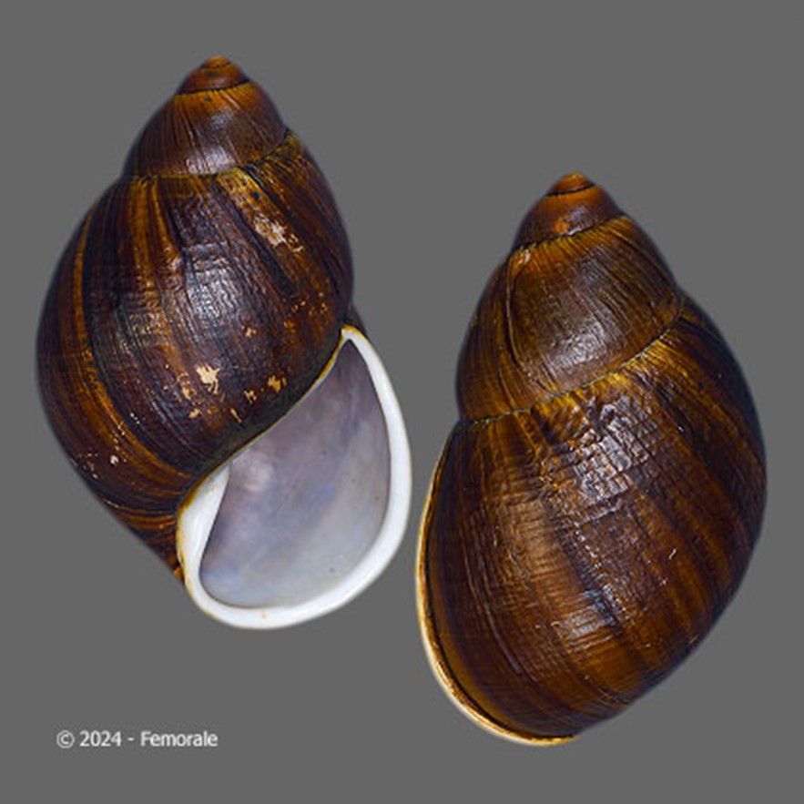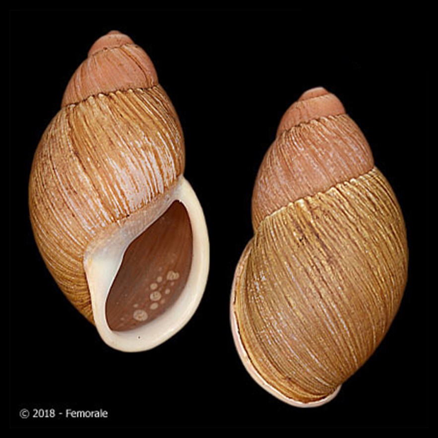 CLASSE: GASTROPODA: TERRESTRE FAMÍLIA: STROPHOCHEILIDAE ESPÉCIE: Megalobulimus bronni (L. Pfeiffer, 1847) Tamanho médio: 70 - 93 mm Habitat: vive no solo, sob folhas ou enterrada parte do tempo Alimentação: provavelmente Herbívoro Ocorrência: Brasil (Espírito Santo, Minas Gerais, São Paulo) Localidade tipo: Brasil, sem localidade específica Sinônimos: Bulimus bronni L. Pfeiffer, 1847; Strophocheilus (Borus) bronni (L. Pfeiffer, 1847); Strophocheilus (Megalobulimus) bronni(L. Pfeiffer, 1847) Fotos: cortesia Femorale: Megalobulimus bronni (1) 93mm; (2) 94 mm Fontes: Descrição original: (como Bulimus bronni L. Pfeiffer, 1847) Pfeiffer, L. (1847). Diagnosen neuer Heliceen. Zeitschrift für Malakozoologie. Cassel. 4 (1): 12-16 [January 1847]; 4 (2): 31-32 [February 1847]; 4 (5): 65-71 [May 1847]; 4 (6): 81-84 [June 1847], disponível online em https://www.biodiversitylibrary.org/page/16292006 página(s): 31 Simone, L....