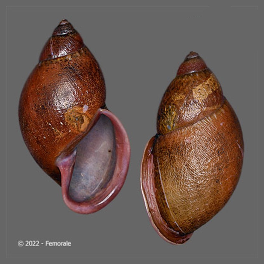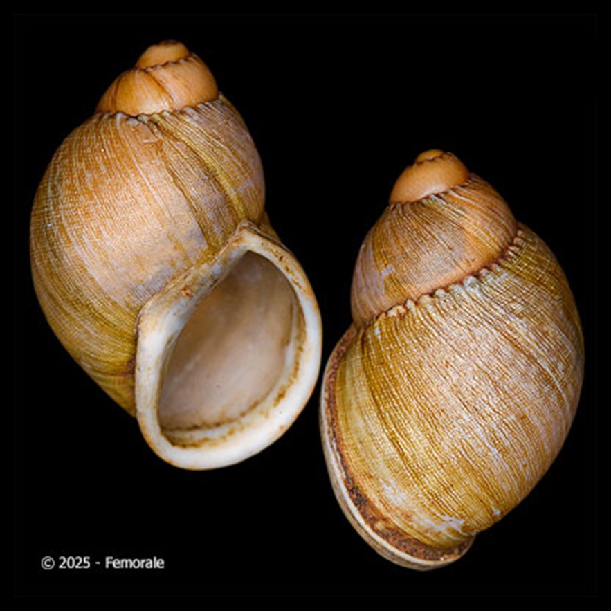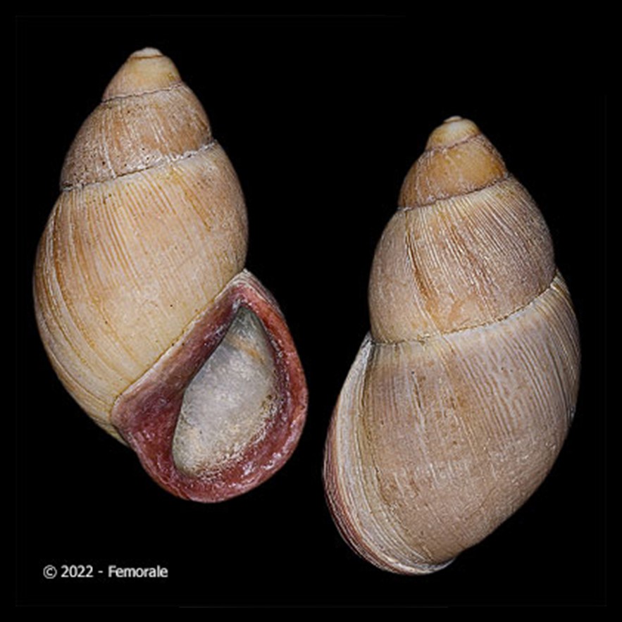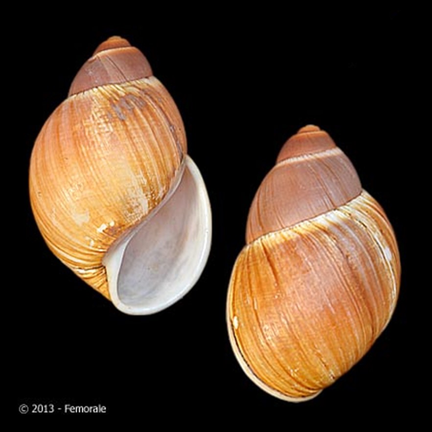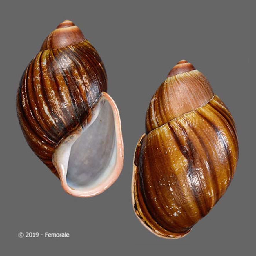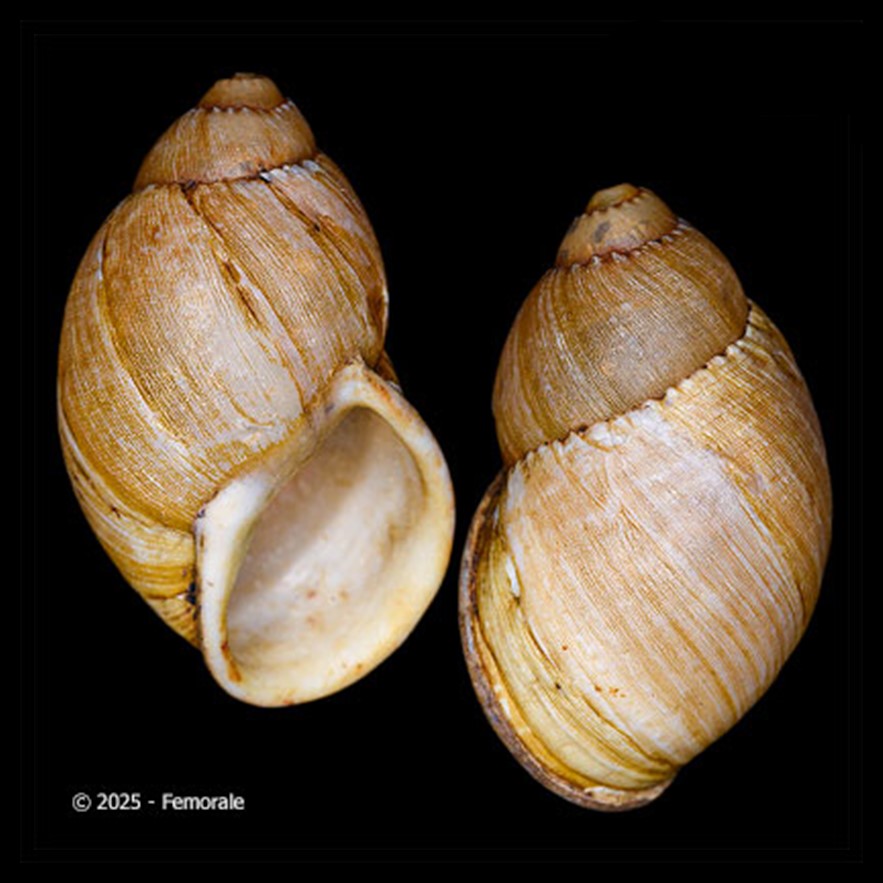 CLASSE: GASTROPODA: TERRESTRE FAMÍLIA: STROPHOCHEILIDAE ESPÉCIE: Megalobulimus bronni (L. Pfeiffer, 1847) Tamanho médio: 70 - 93 mm Habitat: vive no solo, sob folhas ou enterrada parte do tempo Alimentação: provavelmente Herbívoro Ocorrência: Brasil (Espírito Santo, Minas Gerais, São Paulo) Localidade tipo: Brasil, sem localidade específica Sinônimos: Bulimus bronni L. Pfeiffer, 1847; Strophocheilus (Borus) bronni (L. Pfeiffer, 1847); Strophocheilus (Megalobulimus) bronni(L. Pfeiffer, 1847) Fotos: cortesia Femorale: Megalobulimus bronni (1) 93mm; (2) 94 mm Fontes: Descrição original: (como Bulimus bronni L. Pfeiffer, 1847) Pfeiffer, L. (1847). Diagnosen neuer Heliceen. Zeitschrift für Malakozoologie. Cassel. 4 (1): 12-16 [January 1847]; 4 (2): 31-32 [February 1847]; 4 (5): 65-71 [May 1847]; 4 (6): 81-84 [June 1847], disponível online em https://www.biodiversitylibrary.org/page/16292006 página(s): 31 Simone, L....
