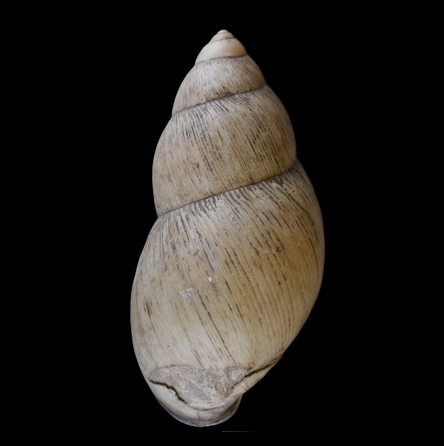 CLASSE: GASTROPODA: TERRESTRE FAMÍLIA: STROPHOCHEILIDAE ESPÉCIE: Megalobulimus diluvianus Fontenelle & Salvador, 2023 † Tamanho médio: 89 - 93 mm Alimentação: provavelmente Herbívoro Localidade tipo: Lagoa Santa, Confins, Minas Gerais, Brasil Distribuição: O material coletado dessa espécie provém de uma Expedição franco-brasileira entre 1971-1977. Os 37 lotes de conchas de gastrópode encontradas foram doadas ao Museu de Zoologia de São Paulo. As conchas coletadas são subfósseis (transição Pleistoceno-Holoceno), quando clima era mais frio e seco que o atual. Não foram encontrados representantes vivos, do que se presume que estejam extintos Zoobank: urn:lsid:zoobank.org:pub:BADD237D-C064-40FB-BFC5-EE66F7876056 Foto: Fontenelle & Salvador, 2023: Museu de Zoologia de São Paulo, HOLOTYPE MZSP 161551, 93mm Figura: Fontenelle & Salvador, 2023. Conchas do Megalobulimus diluvianus com detalhes da...