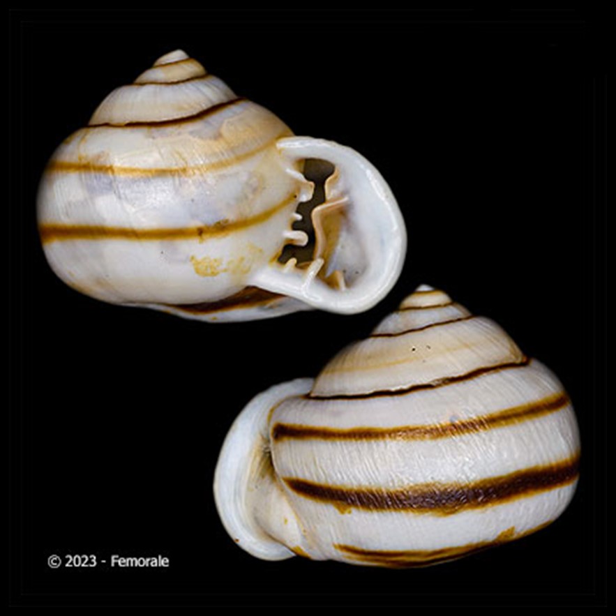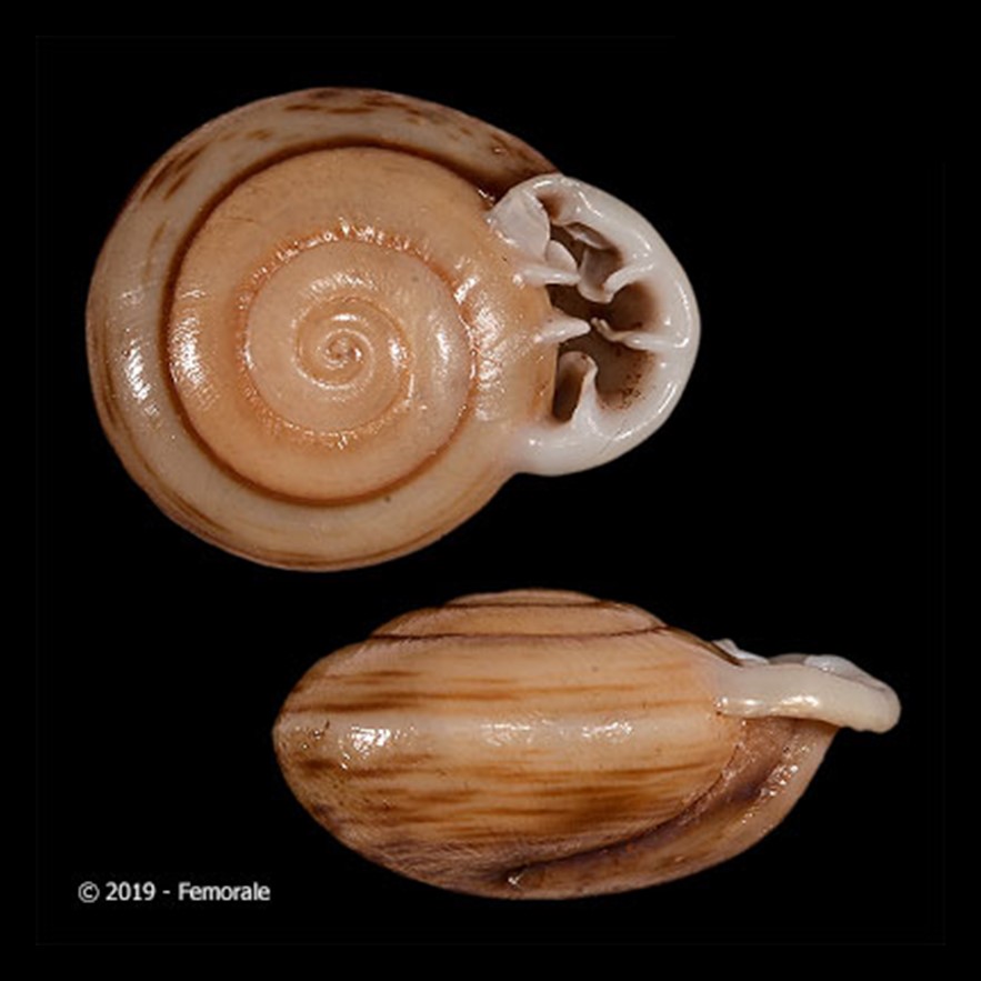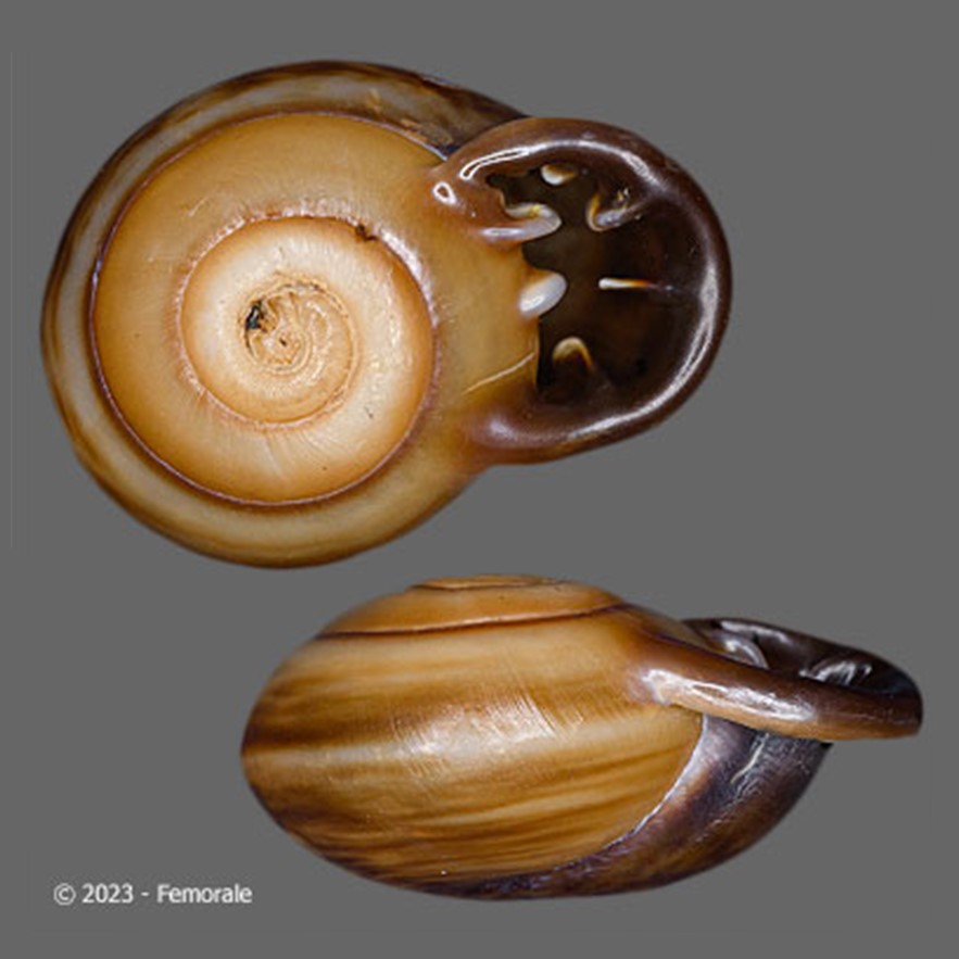 CLASSE: GASTROPODA: TERRESTRE FAMÍLIA: TOMIGERIDAE ESPÉCIE: Biotocus cumingii (L. Pfeiffer, 1849) Tamanho médio: 6 mm Ocorrência: Venezuela, Suriname, Brasil (Pará, Maranhão, Ceará, Rio Grande do Norte, Paraíba, Alagoas) Localidade tipo: Brasil, Pará Nome original: Tomigerus cumingii L. Pfeiffer, 1849 Comentário: Salgado & Leme (1990) propuseram o subgênero Biotocus para abrigar espécies vivíparas de Tomigerus, baseado em observações de campo e de laboratório, sobre dados conquiológicos e anatômicos. Fotos: cortesia Femorale, 2009, 6.0 mm Figura (1): Breure, Abraham S. H. & Ablett, Jonathan D., 2012: (A-C,i) Biotocus cumingii (Pfeiffer, 1849), SYNTYPE NHMUK 1975787; (D-F,ii) Biotocus turbinatus (Pfeiffer, 1845), LECTOTYPE NHMUK 1975253, 9.68mm Figura (2): Campos Salgado, Norma; Moreira Leme, José Luiz, 2000. Detalhe da abertura da concha...