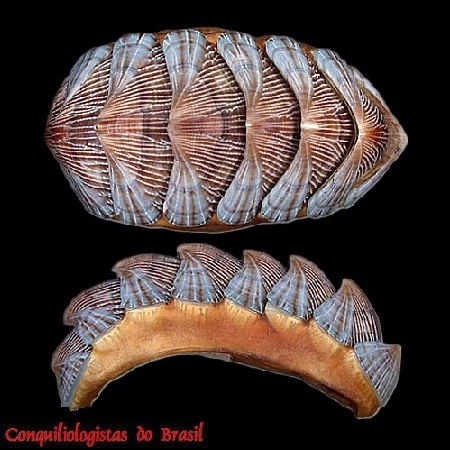 CLASSE: POLYPLACOPHORA: MARINHO FAMÍLIA: CHAETOPLEURIDAE ESPÉCIE: Chaetopleura angulata (Spengler, 1797) Tamanho médio: 45 mm Profundidade: 0 - 30 m Habitat: vive sob ou sobre pedras Alimentação: herbívoro Frequência: comum Ocorrência no Brasil: RJ até RS Localidade tipo: não documentada Sinônimos: Stereochiton felipponei Dall, 1921; Typhlochiton felipponei Dall, 1921 Descrição original: Spengler, L. (1797). Udförlig beskrivelse over det mangeskkallede konkylie-slaegt, af Linneus kaldet Chiton med endeel nye arter og varieteter. Skrifter af Naturhistorie-Selskabet. 4: 62-103 pl. 6., disponível online em https://www.biodiversitylibrary.org/page/58273821 página(s): 71-72 WoRMS: https://www.marinespecies.org/aphia.php?p=taxdetails&id=848025 MolluscaBase: https://www.molluscabase.org/aphia.php?p=taxdetails&id=848025 Foto A: Itajaí, Santa Catarina. 45 mm. Col. E.Schirrmeister Foto B: Praia de Arroio Teixeira, Capão da Canoa, Rio Grande do Sul. 28 mm. Femorale