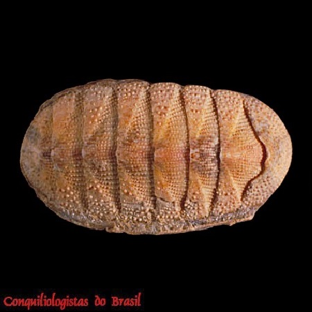 CLASSE: POLYPLACOPHORA: MARINHO FAMÍLIA: CHAETOPLEURIDAE ESPÉCIE: Chaetopleura asperrima (A. A. Gould, 1852) Tamanho médio: 25 mm Profundidade: 0 - 45 m Habitat: vive sob ou sobre pedras Alimentação: herbívoro Frequência: incomum Ocorrência no Brasil: ES até RS Localidade tipo: Ilha do Pai, Rio de Janeiro, Brasil Sinônimo: Chiton asperrimus A. A. Gould, 1852 Descrição original: Gould, A. A. (1852). Mollusca and shells. In: United States Exploring Expedition during the years 1838, 1839, 1840, 1841, 1842 under the command of Charles Wilkes. Boston. 12: 1-510; atlas 1856: 1-16., available online at https://www.biodiversitylibrary.org/page/10991152 page(s): 326; note: named based on a manuscript name by Couthouy WoRMS: https://www.marinespecies.org/aphia.php?p=taxdetails&id=848053 Foto A: Boa Viagem, Rio de Janeiro. 25 mm. RMNH.MOL.K.3262 – Museu de História Natural de Roterdam