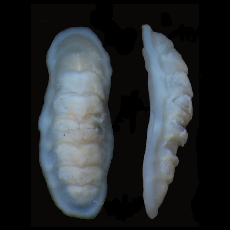 CLASSE: POLYPLACOPHORA: MARINHO FAMÍLIA: ISCHNOCHITONIDAE ESPÉCIE: Stenoplax marcusi (Righi, 1971) Tamanho médio: 11 mm Profundidade: 90 m Habitat: vive em pedras ou sob elas Alimentação: herbívoro Frequência: incomum Ocorrência no Brasil: Alagoas até São Paulo Localidade tipo: Brasil; Alagoas, Off Piaçabuçu: 10º33'45" S-36º12'00"W. 27 m, 1 ex. (ZU 35), "Akaroa" IX. 1965 Sinônimos: Ischnochiton marcusi Righi, 1971; Stenoplax (Stenoplax) marcusi (Righi, 1971) Etimologia: o nome da espécie é uma homenagem in memorian ao zoólogo Prof. Dr. Ernst G. G. Marcus (1893-1968) Foto A: Luis Correia, Piauí. 11 mm. col. C.Henckes Figura: Jardim, J.A., Almeida, S.M. de & Simone, L.R.L. de. (2022): (A-E) Stenoplax marcusi (Righi, 1971); (F-J) Acanthochitona terezae Guerra-Junior, 1983; (K-O) Acanthochitona ciroi Righi, 1971; (P-T) Acanthochitona oxum; escala...