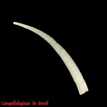 CLASSE: SCAPHOPODA : MARINHO FAMÍLIA: DENTALIIDAE ESPÉCIE: Graptacme calamus (Dall, 1889) Tamanho médio: 23 mm Profundidade: 17 - 124 m Habitat: Lodo e areia - Vive em fundos lodosos ou arenosos Alimentação: Carnívoro - Alimenta-se de outros animais Ocorrência no Brasil: Amapá até Rio Grande do Sul Localidade tipo: "Turtle Harbor, Florida, USA [25º15’32"N, 80º14’16"W], 7 m (designação subsequente por Henderson, 1920: 72)" Nome original: Dentalium calamus Dall, 1889 Sinônimos: Dentalium (Graptacme) calamus Dall, 1889 Fotos: (1) Caetano, Scarabino & Absalão (2006): LECTOTYPE de Graptacme calamus (Dall, 1889), USNM 68117, 19 mm Figura: Caetano, Scarabino & Absalão (2006): Gênero Graptacme e Fustiaria: (39–43) Graptacme calamus, (39–40) LECTOTYPE USNM 68117, 19 mm, (41–43) IBUFRJ 14232, 18 mm; (44–45) Graptacme perlonga,...