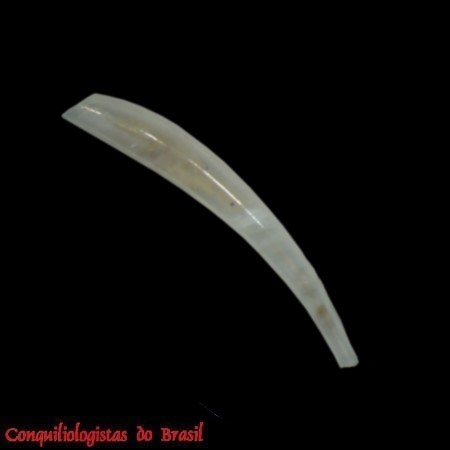 CLASSE: SCAPHOPODA :: MARINHO FAMÍLIA: GADILIDAE ESPÉCIE: Gadila braziliensis (J. B. Henderson, 1920) Tamanho médio: 8 mm Profundidade: 23 - 220 m Habitat: vive em fundos arenosos Alimentação: carnívoro Ocorrência no Brasil: Rio de Janeiro, São Paulo, Rio Grande do Sul Localidade tipo: Brasil, off Rio de Janeiro, 23°08’S 41°34’W, 108 m depth (USBF) Nome original: Cadulus (Platyschides) braziliensis J. B. Henderson, 1920 Sinônimos: Cadulus braziliensis J. B. Henderson, 1920 Fotos: Simone, 2009: Gadila braziliensis, Museu de Zoologia da Universidade de São Paulo, MZUSP 46736, P.I. sta. 4854, 17.xii.1985. 7.8mm Figura: Simone, 2009: (16‑22) Polyschides noronhensis; (16) HOLOTYPE, 8.6 mm; (19) PARATYPE MZUSP 32011, 7.8 mm; (18) PARATYPE MZUSP 32011#1. (19‑20) PARATYPE MZUSP 46736; (21‑22) Radulae de 02...