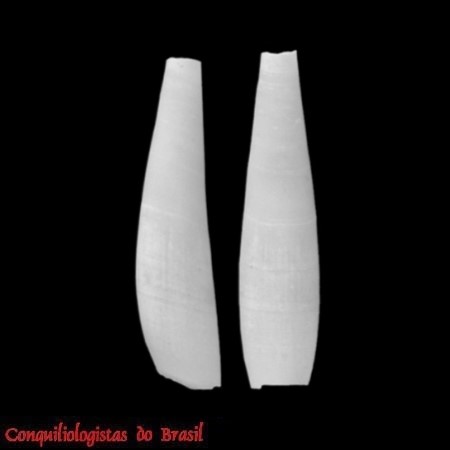 CLASSE: SCAPHOPODA : MARINHO FAMÍLIA: GADILIDAE ESPÉCIE: Gadila dominguensis (A. d'Orbigny, 1847) Tamanho médio: 7 - 8 mm Profundidade: 53 - 103 m Habitat: Lodo e areia - Vive em fundos lodosos ou arenosos Alimentação: Carnívoro - Alimenta-se de outros animais Ocorrência no Brasil: Amapá até Rio de Janeiro (Scarabino 1994, Caetano et al. 2006) Localidade tipo: "Saint-Domingue [Dominican Republic]; Martinique; Saint-Thomas; Cuba" Nome original: Dentalium dominguense A. d'Orbigny, 1847 Sinônimos: Cadulus (Gadila) acus Dall, 1889; Cadulus (Gadila) dominguensis (A. d'Orbigny, 1847); Cadulus acus Dall, 1889; Cadulus dominguensis (A. d'Orbigny, 1847); Dentalium dominguense A. d'Orbigny, 1847; Gadila acus (Dall, 1889); Gadus dominguensis (A. d'Orbigny, 1847) Fotos: (1) Caetano, Scarabino & Absalão (2006): Gadila dominguensis, IBUFRJ 9513, 8 mm; (2) Molluscabase, 2024: Gadila...